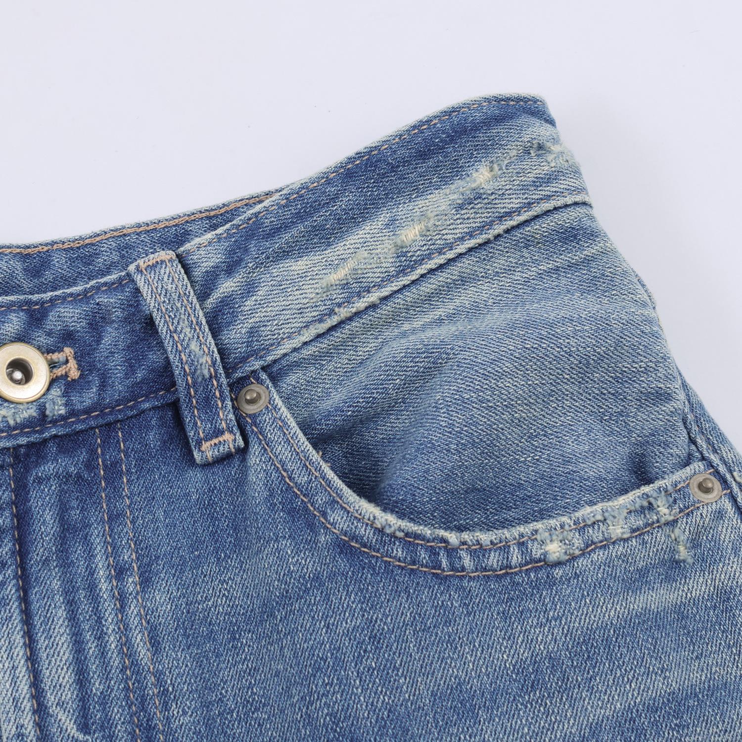 Solid Color, Water-washed Distressed, Metal Buttons, High-waisted Design, Leather Pocket