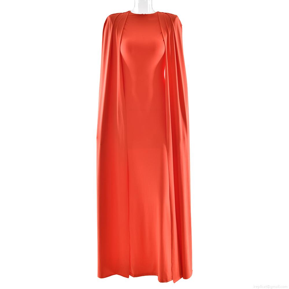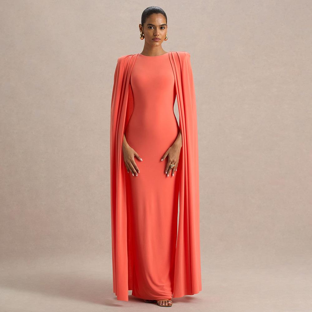 • Elegant Cape Evening Dress Polyester Milk Silk Slim Fit Maxi Party Gown Women Formal Occasion Wedding Guest Sleeveless Bodycon High Slit Solid Color