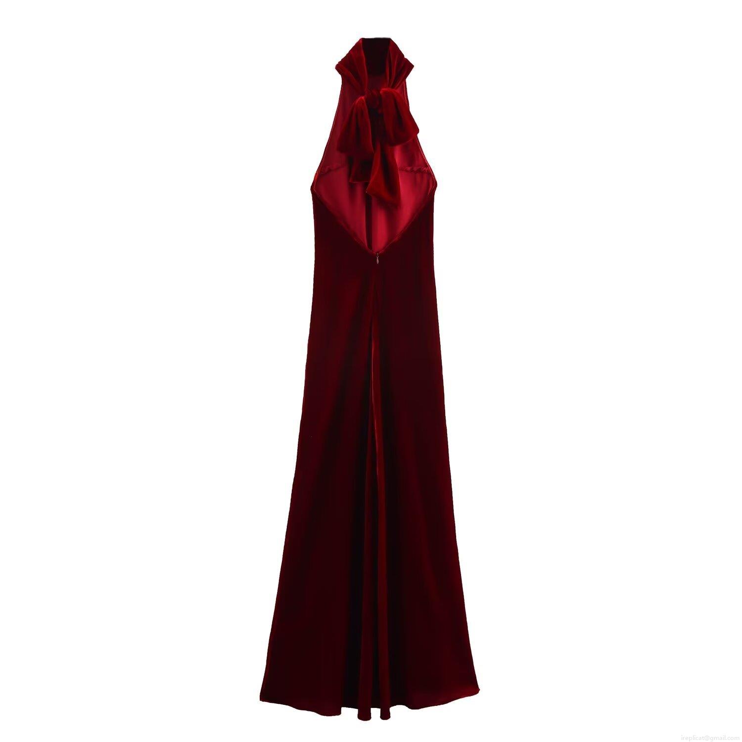 • Elegant Halter Maxi Dress Satin Velvet Backless Evening Gown With Big Bow Patchwork A-Line Sleeveless Party Wedding Guest Dress For Women Streetwear