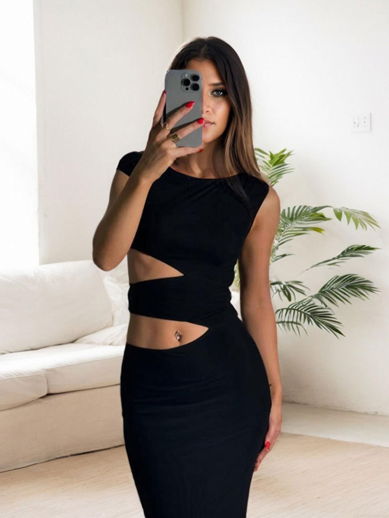 • Elegant One Shoulder Cut Out Bodycon Maxi Dress Women Sexy Hollow Out Sleeveless High Waist Knit Evening Party Dress 95% Polyester 5% Elastane Long Dress