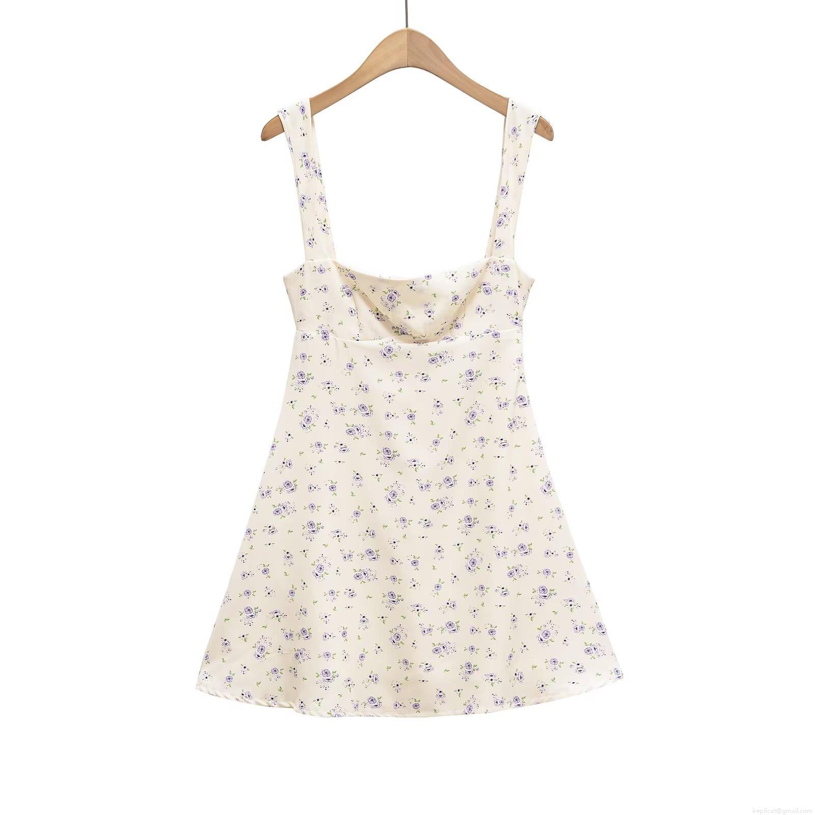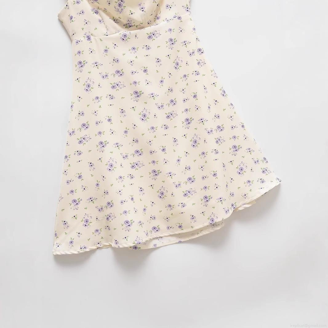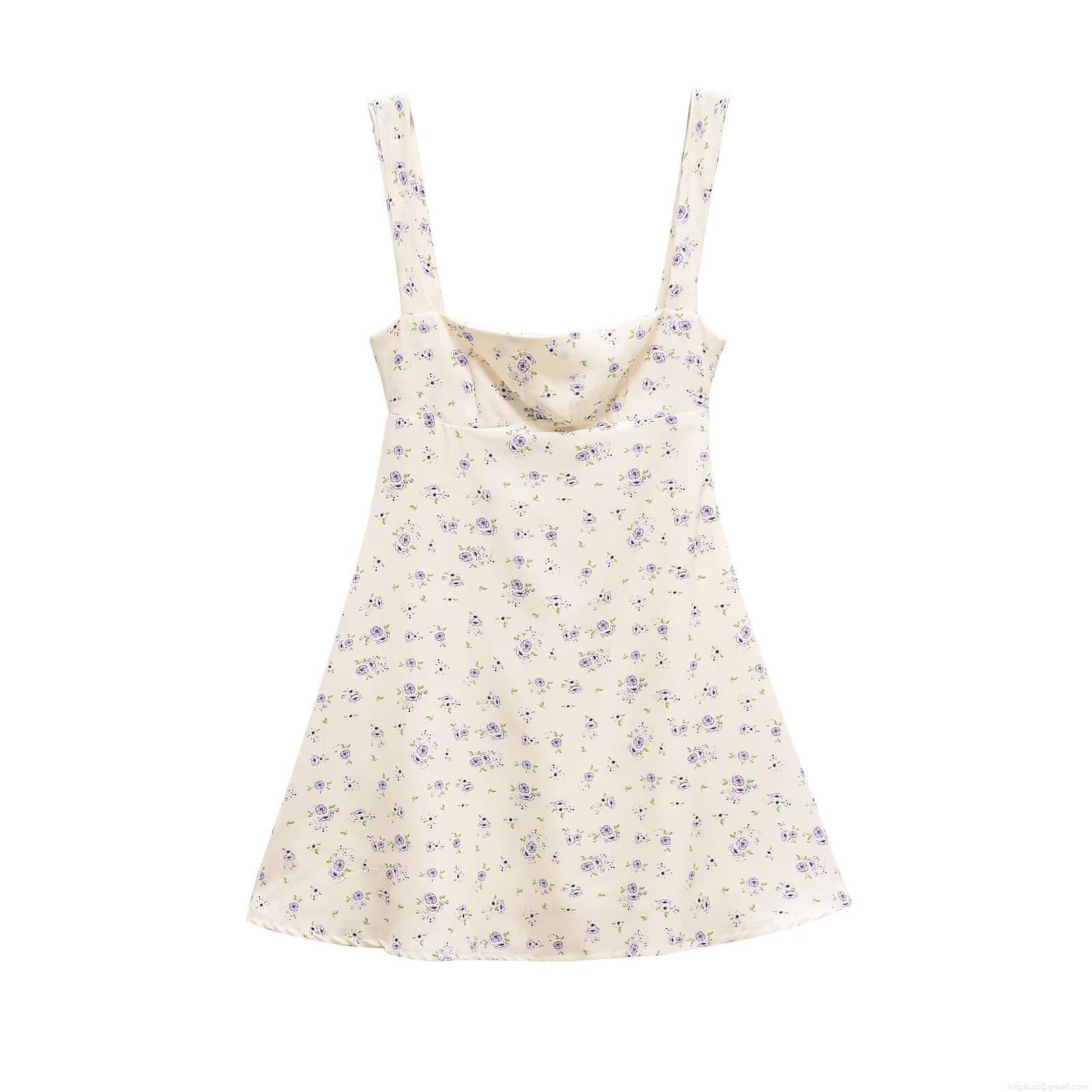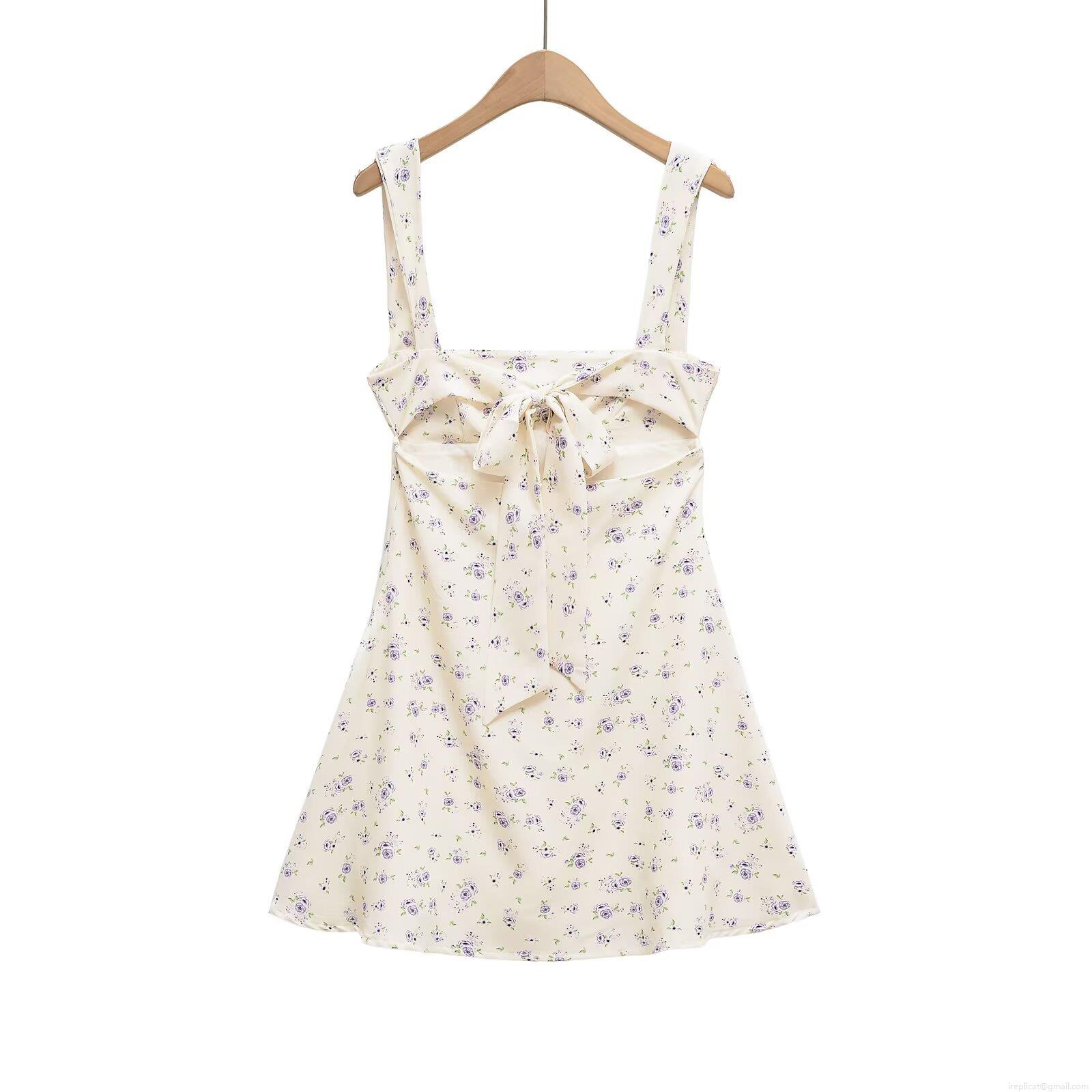 • Elegant Women Purple Floral Print Camisole Mini Dress Backless Bow Tie Slim Fit A-Line Chiffon Texture Short Summer Dress For Party Date