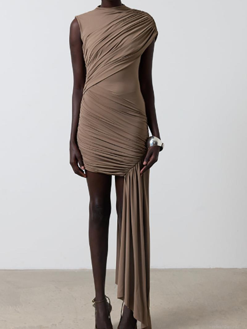 Elegant Women Ruched Mini Dress Sleeveless Asymmetric Hem Bodycon Party Dress Solid Color Chic Summer Fashion Slim Fit Vestidos