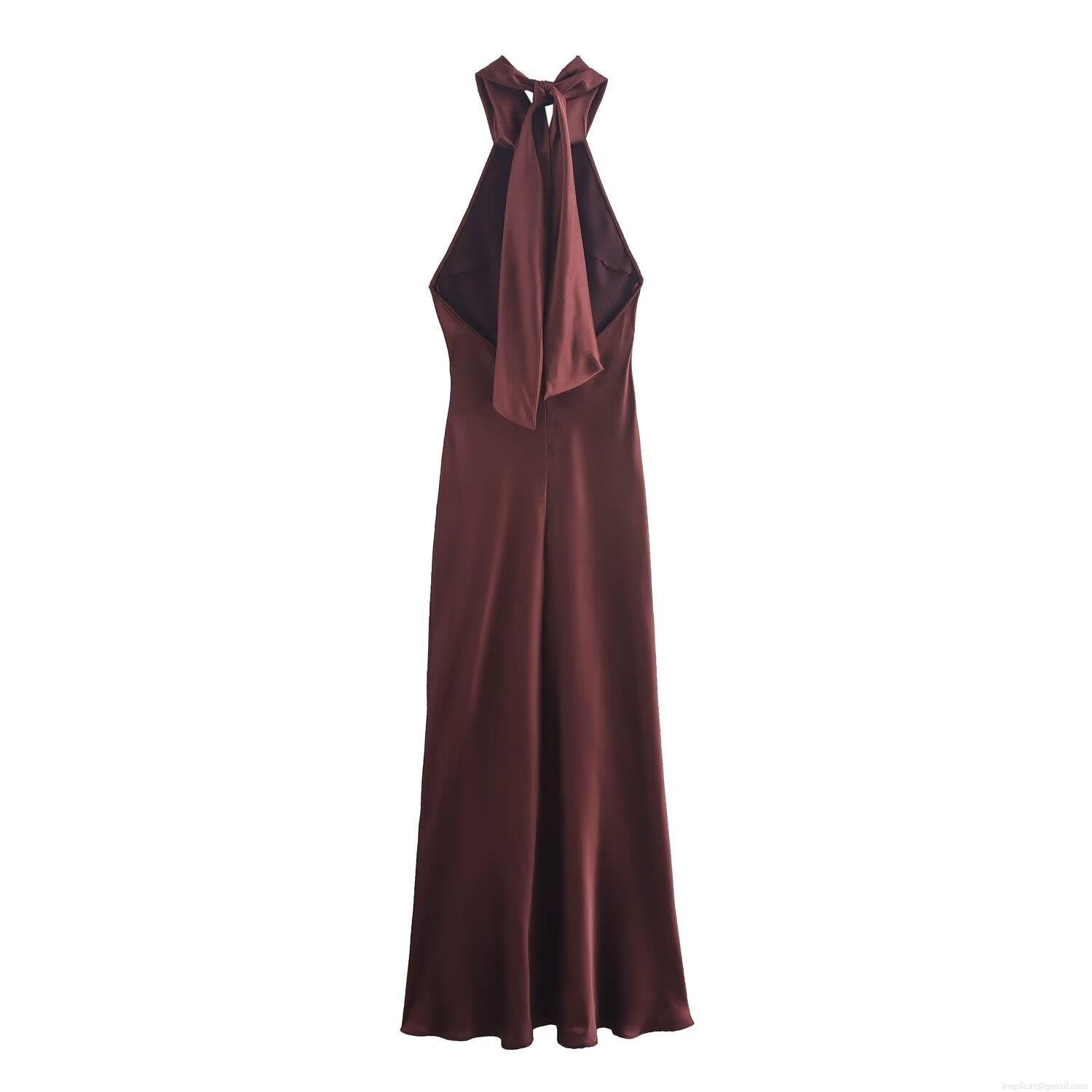 • Elegant Women's Halter Neck Backless Satin Maxi Dress Sexy Sleeveless Silk Texture Bow Tie Back Long A-line Dress For Wedding Guest Party Evening Banquet Night Out