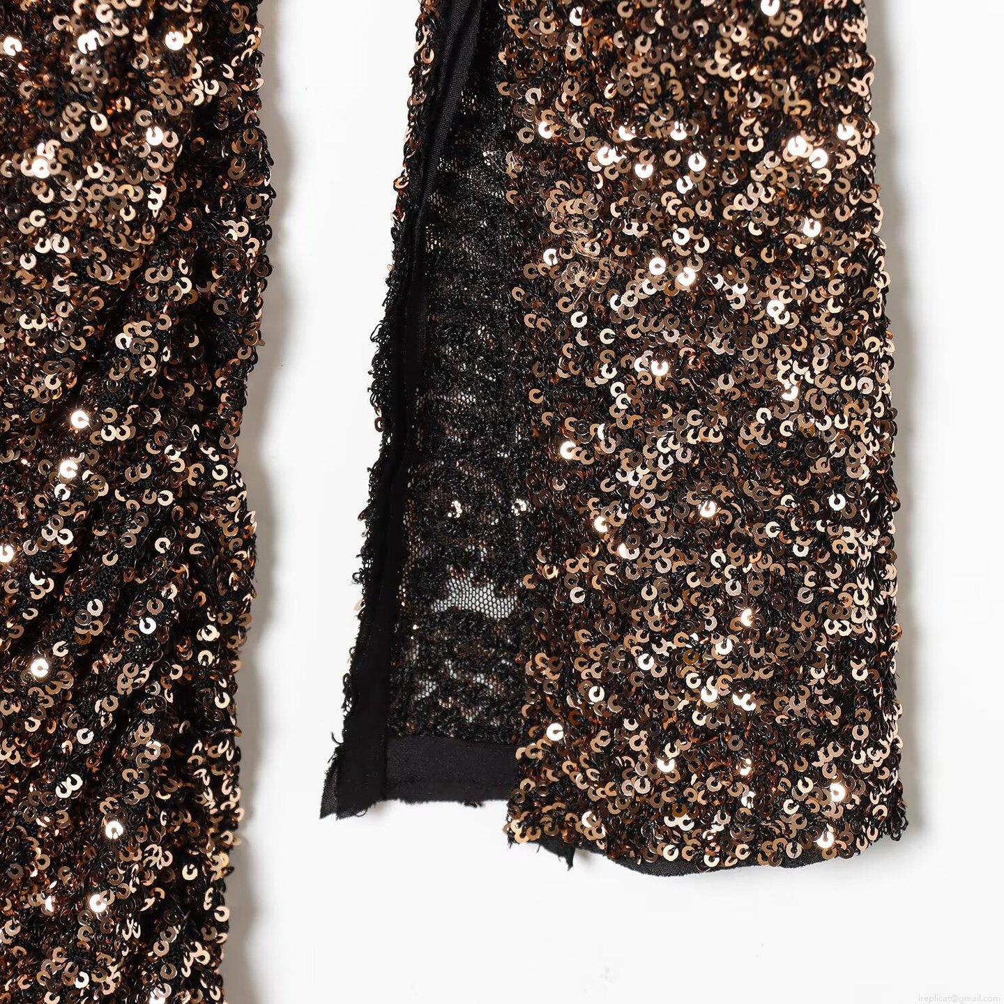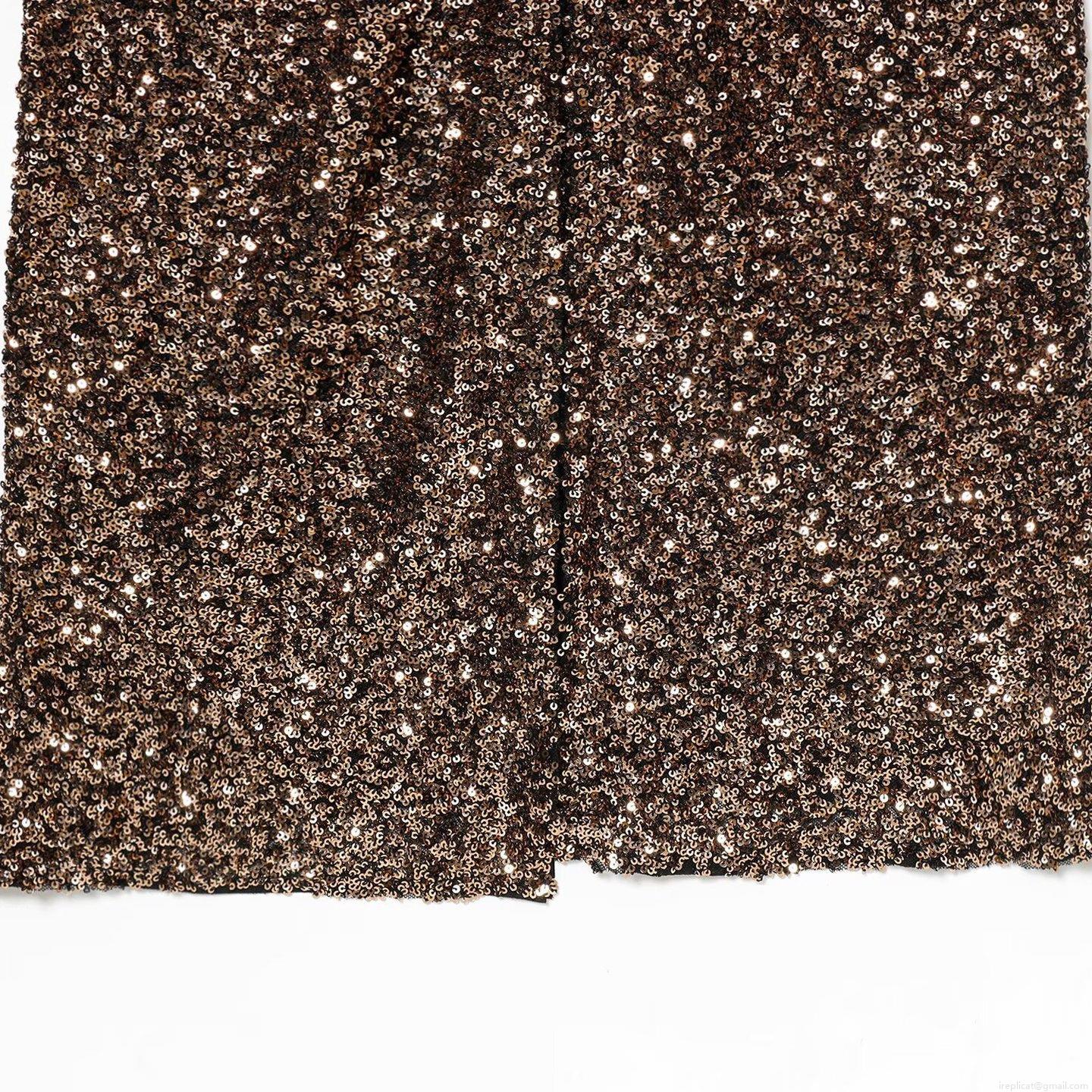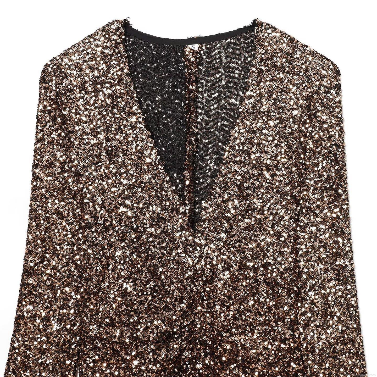 • Elegant Women's V-Neck Sequin Maxi Dress Long Sleeve Padded Shoulder Slim Fit Bodycon Party Evening Gown Coffee Brown Sequin Polyester Gown