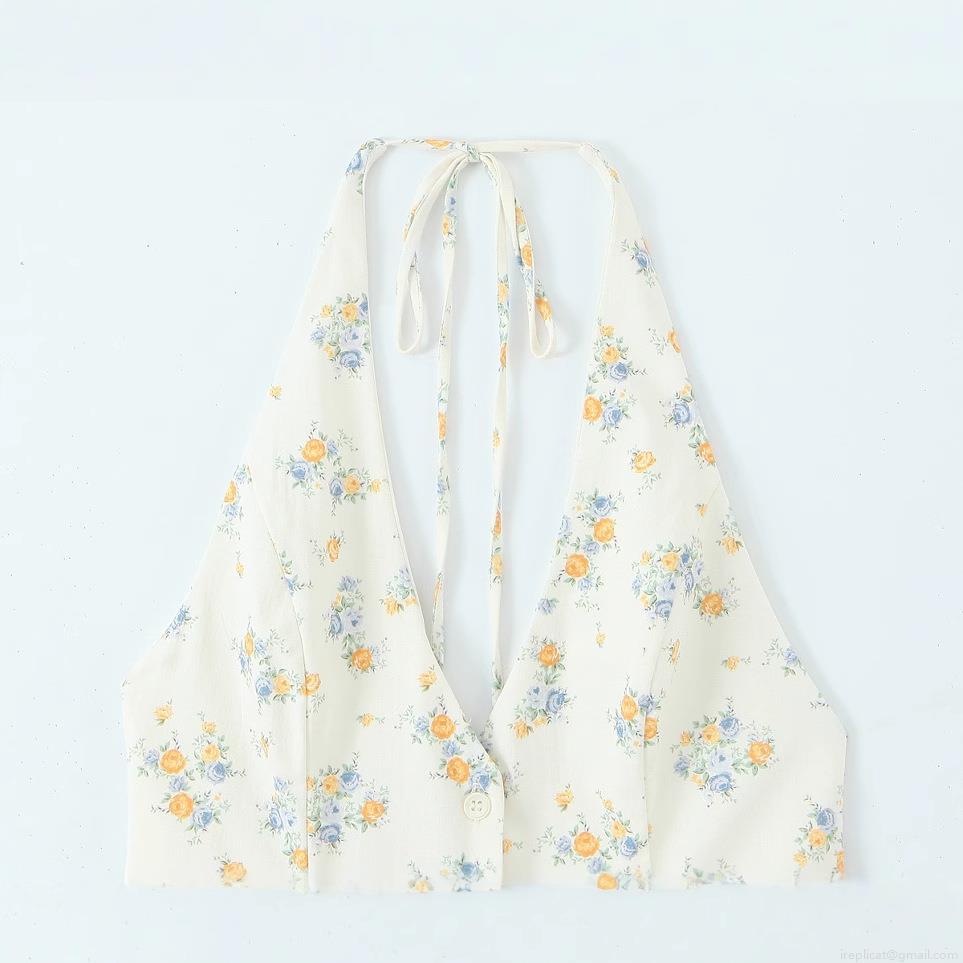 Neckband, Backless, Floral Print, Single-breasted, Deep V-neck