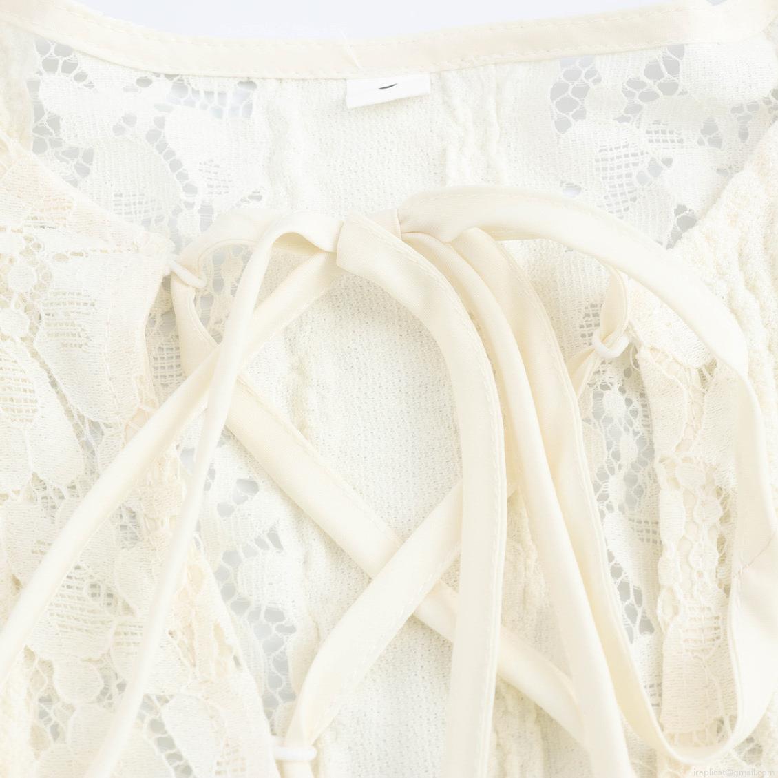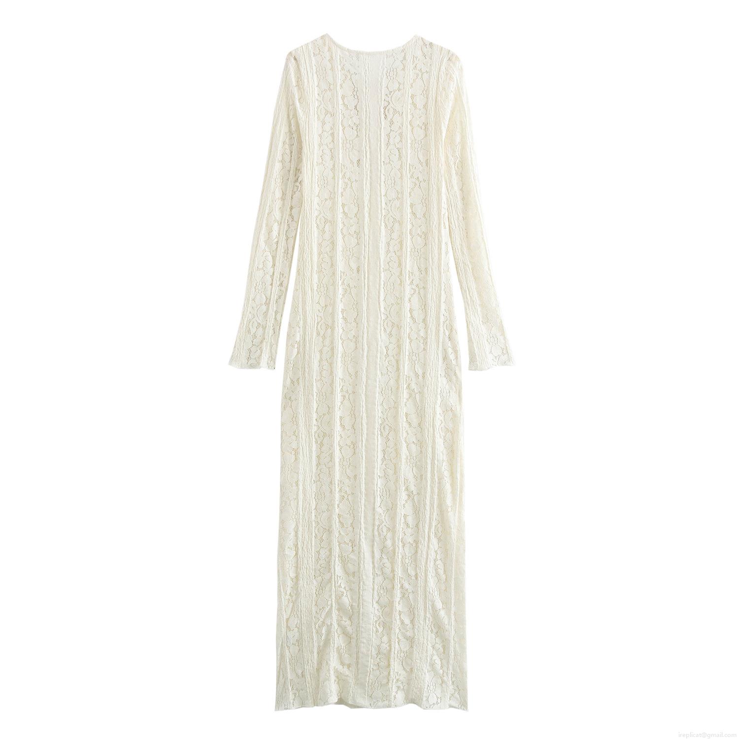 French Elegant Lace Maxi Dress For Women Sexy V-Neck Hollow Out Bodycon Long Sleeve Tie-up Slim Fit Party Dress White Polyester Floral Lace Gown