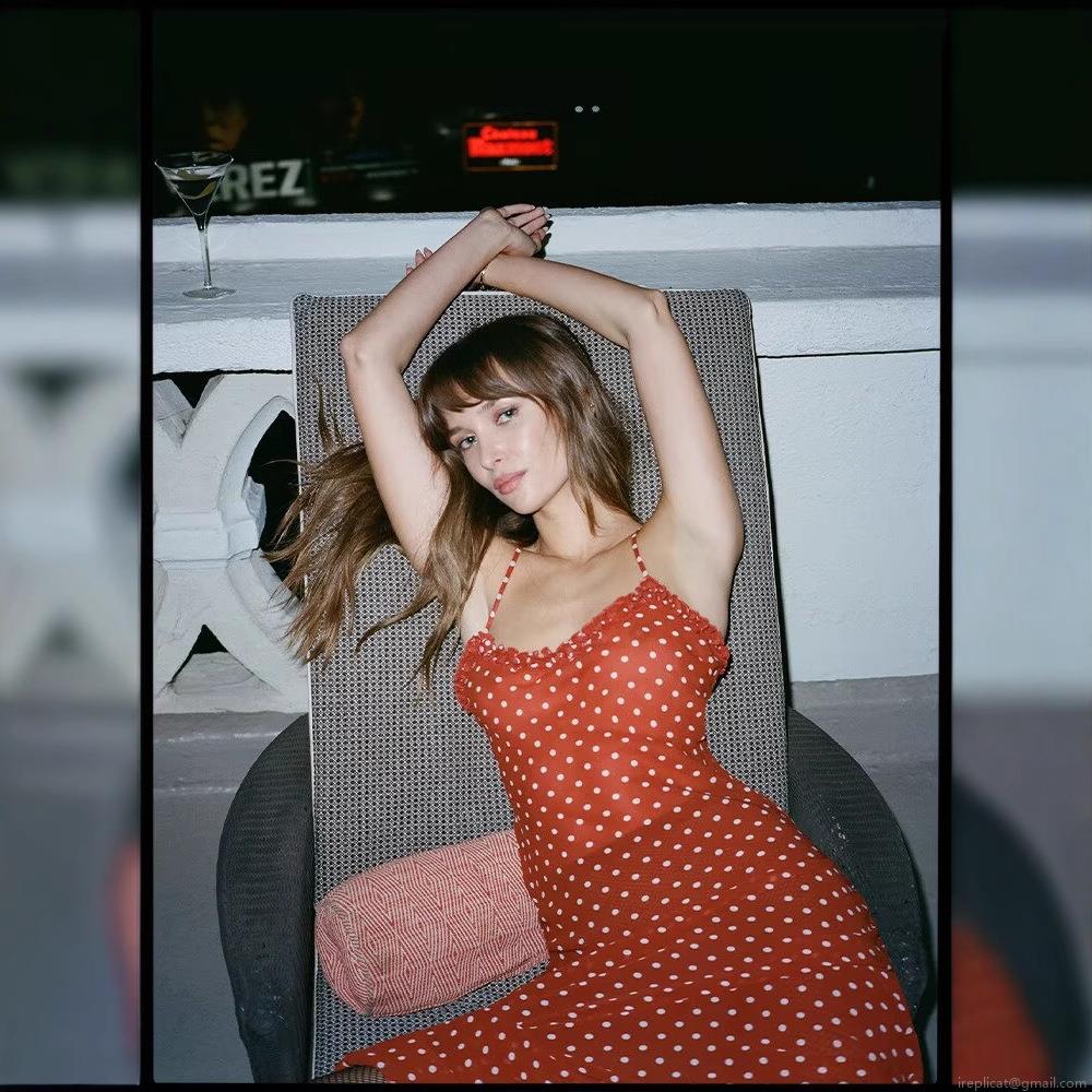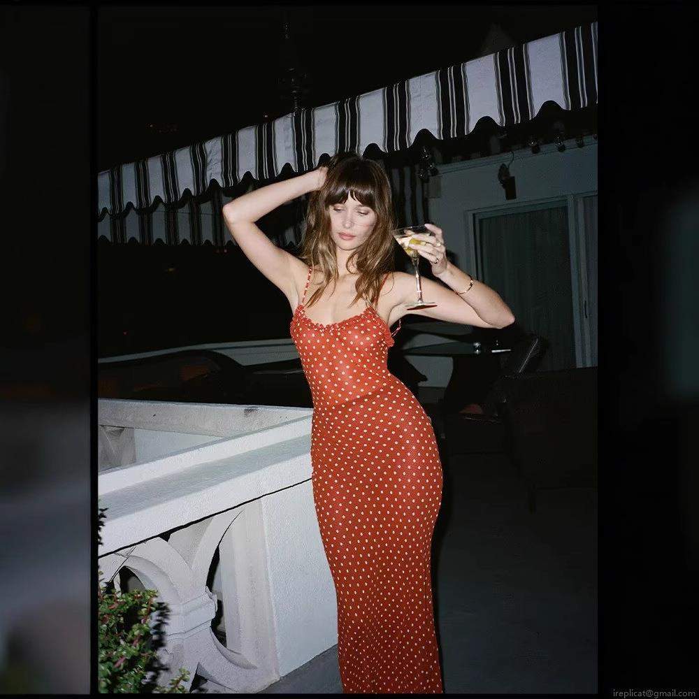 • French Retro Polka Dot Camisole Maxi Dress For Women Summer Vacation Sleeveless Ruffle Edge Slim Fit 100% Polyester Long Dress