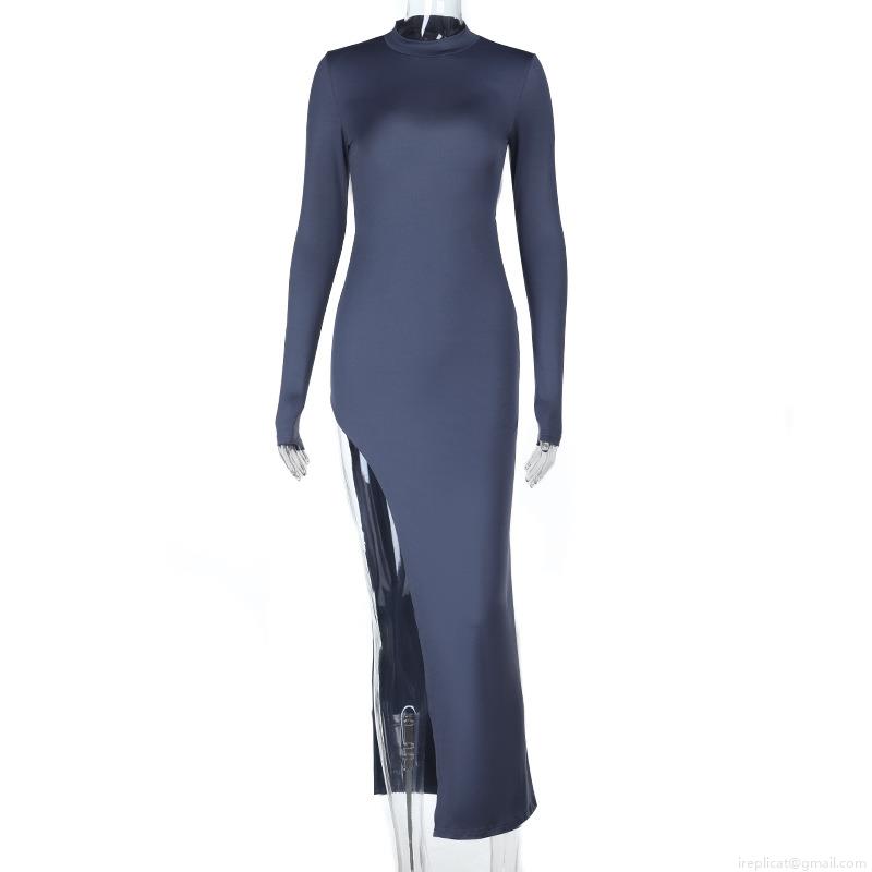 • Sexy Backless High Split Maxi Dress Mock Neck Long Sleeve Slim Fit Polyester Spandex Solid Color Long Gown For Women Party Club Streetwear