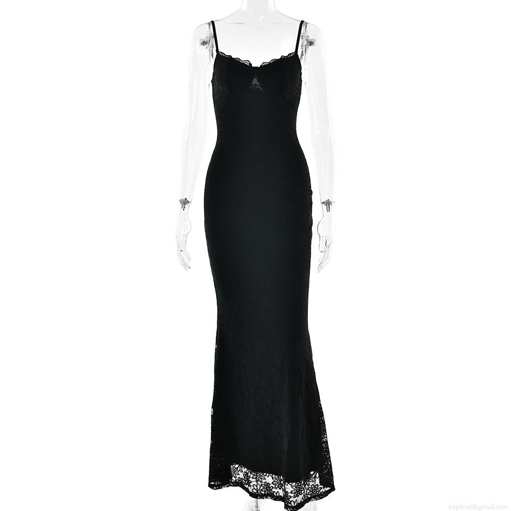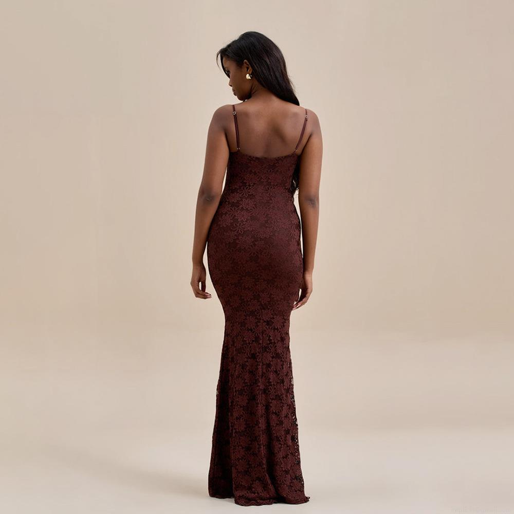 • Sexy Backless Lace Bodycon Maxi Dress Polyester Blend Floral Spaghetti Strap High Waist Elegant Evening Party Club Wedding Guest Dress For Women
