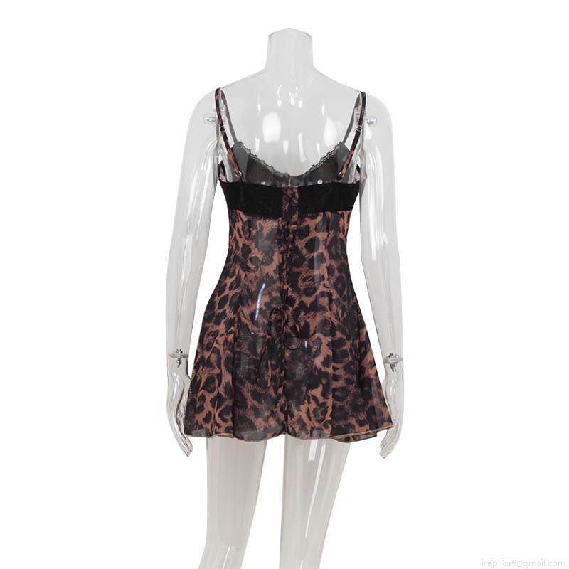 Sexy Leopard Print Lace Patchwork Cami Mini Dress For Women Backless Slim Fit A-Line Party Clubwear Dress With Bow Decor Sleeveless Short Dress