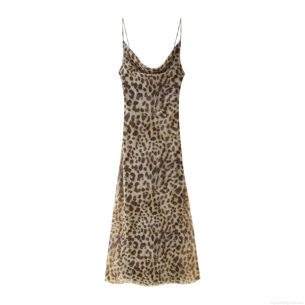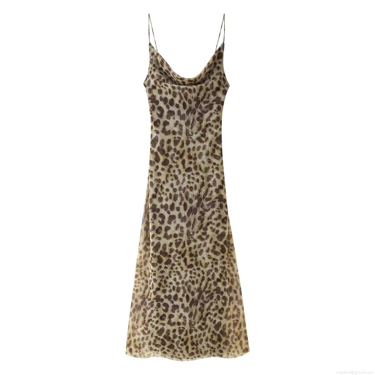 • Sexy Leopard Print Mesh Maxi Dress Cowl Neck Spaghetti Strap Sleeveless Party Evening Clubwear For Women Elegant Slim Fit Camisole Dress