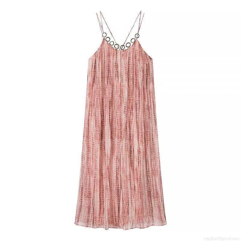 Tie Dye, Pleats, Backless, Metal Ring, Vertical Texture