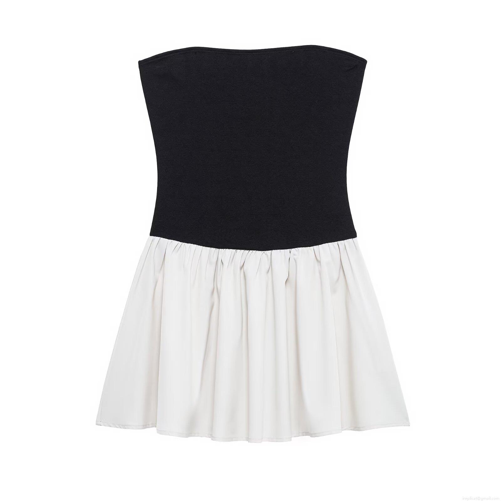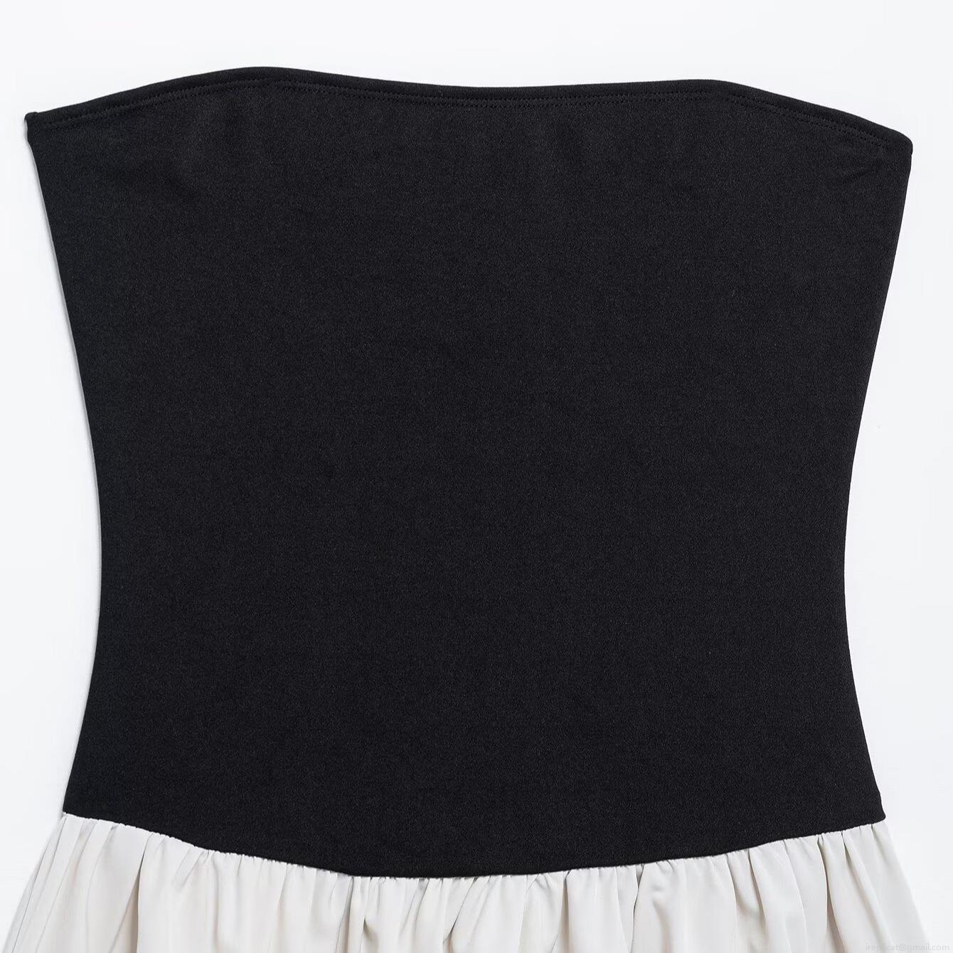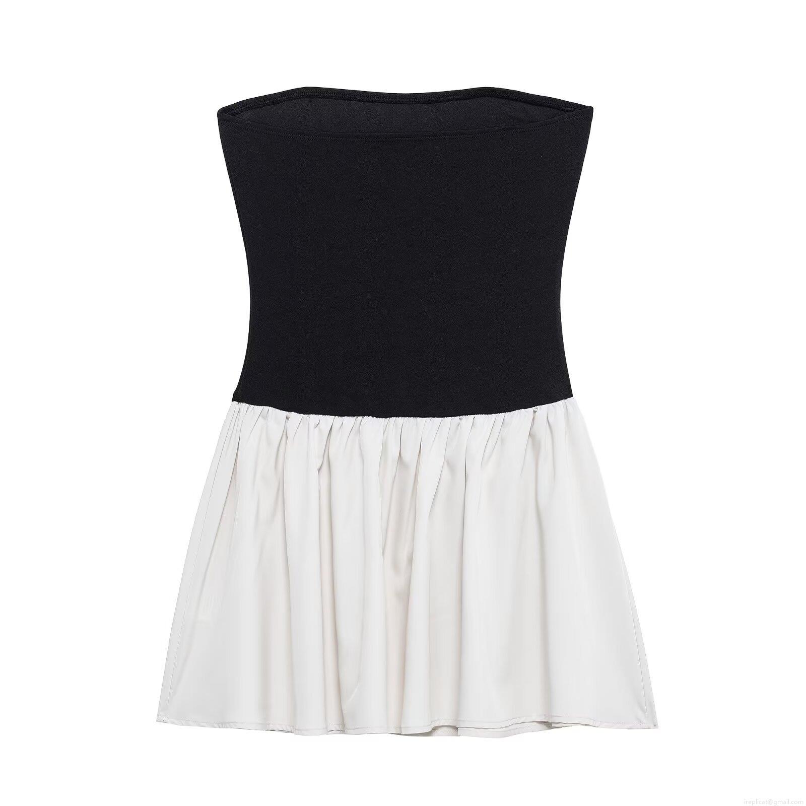Sexy Tube Top Color Block Patchwork Pleated Mini Dress Women Summer Fashion Slim Fit Sleeveless A-Line Bodycon Evening Party Clubwear Outfits Polyester
