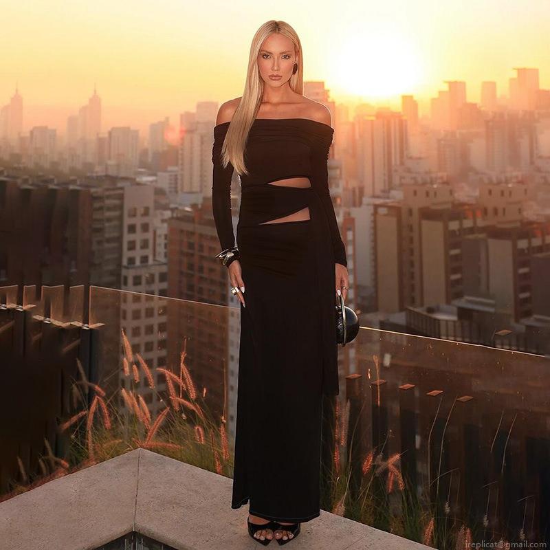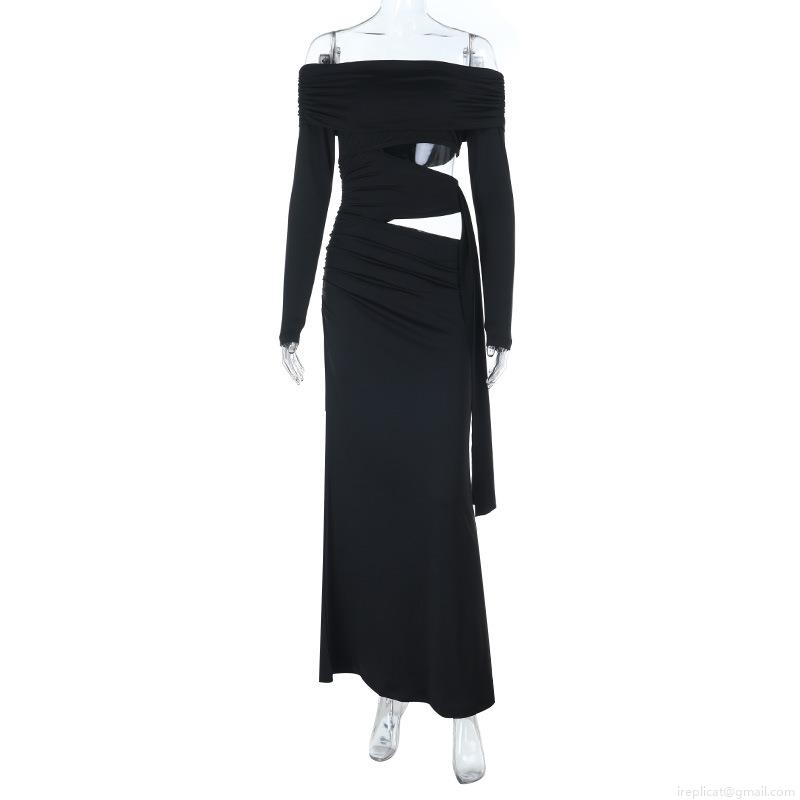 • Sexy Women Off Shoulder Cut Out Long Sleeve Maxi Dress Ruched Bodycon High Waist Solid Color Patchwork Evening Party Club Long Dress