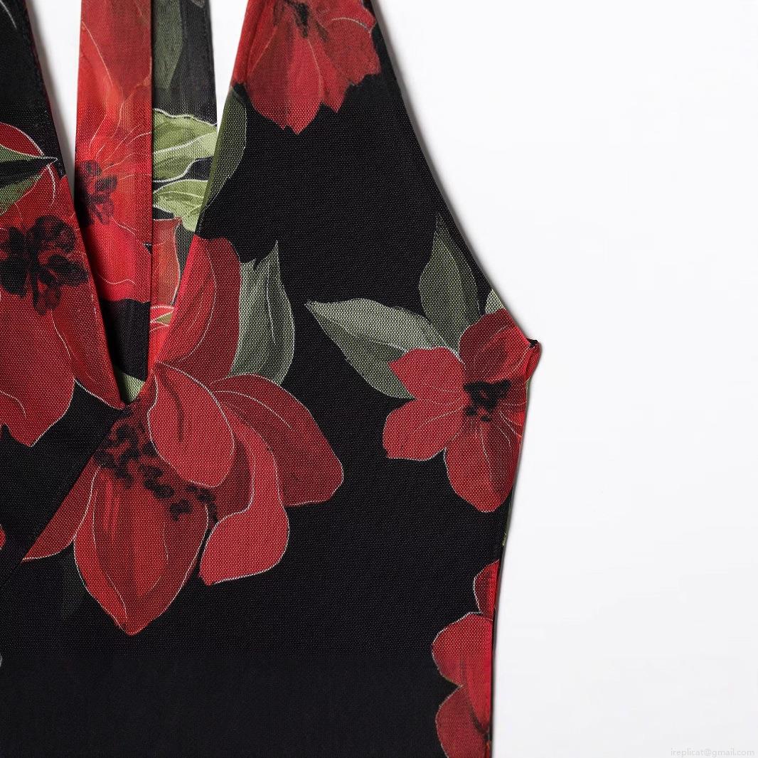 • Vintage Red Floral Print Halter Maxi Dress For Women Elegant Sleeveless Mesh Patchwork Bodycon Long Party Dress For Summer Vacation Evening