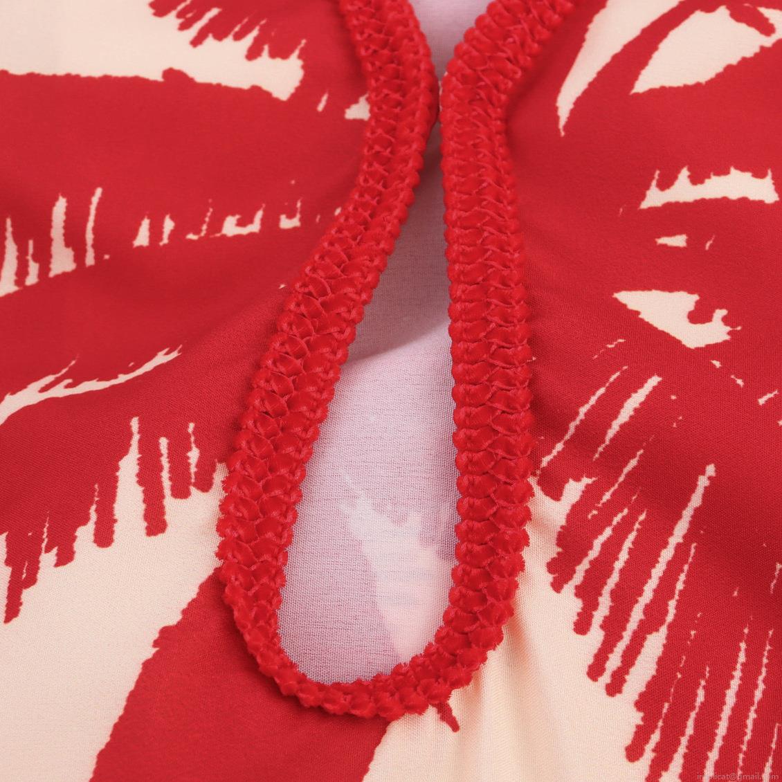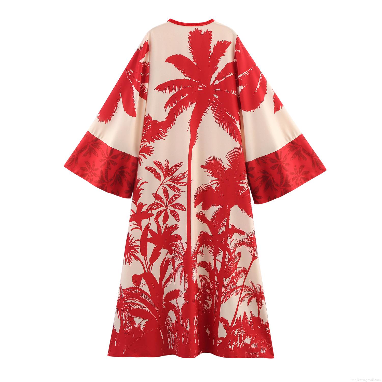 • Women Bohemian Tropical Palm Tree Print Maxi Dress V-Neck Wide Long Sleeve Polyester Resort Beach Vacation Long Gown With Webbing Detail