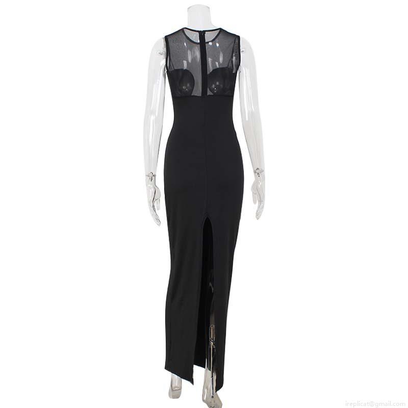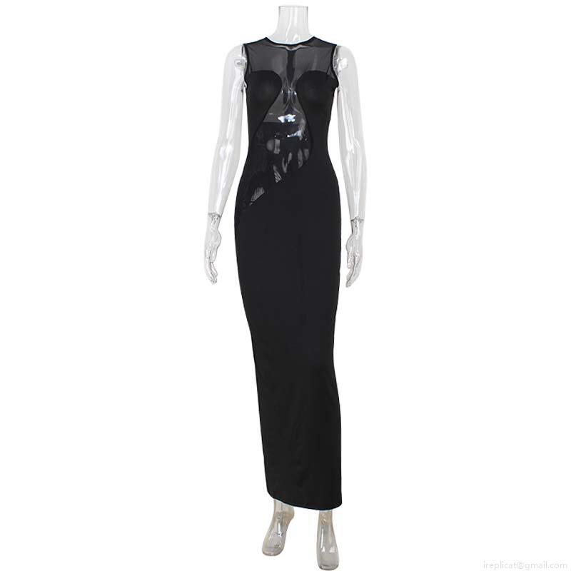 • Women Elegant Sexy Mesh Patchwork Maxi Dress Sleeveless Bodycon Transparent Backless Long Dress For Evening Party Prom Wedding Guest Red Carpet