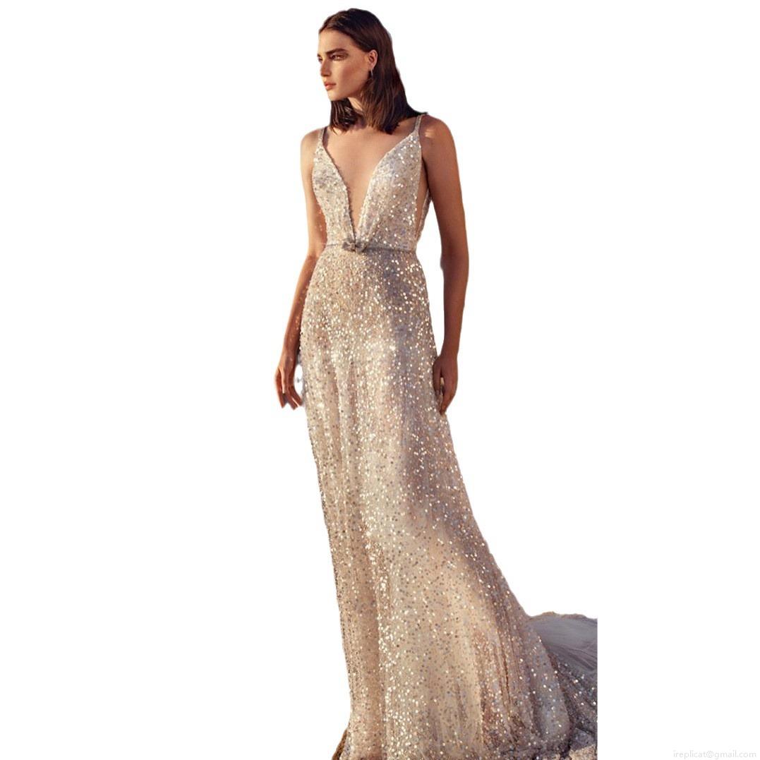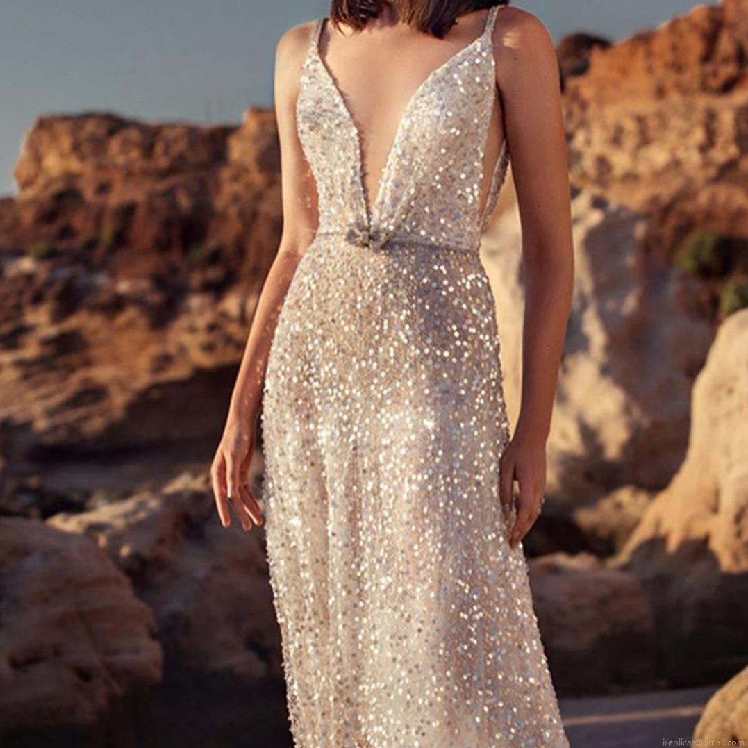 • Women Elegant V-Neck Sequin Evening Dress Sexy Sleeveless Spaghetti Strap Floor-Length Maxi Party Gown For Wedding Banquet Prom Silver Champagne Bodycon Luxury Formal Dress