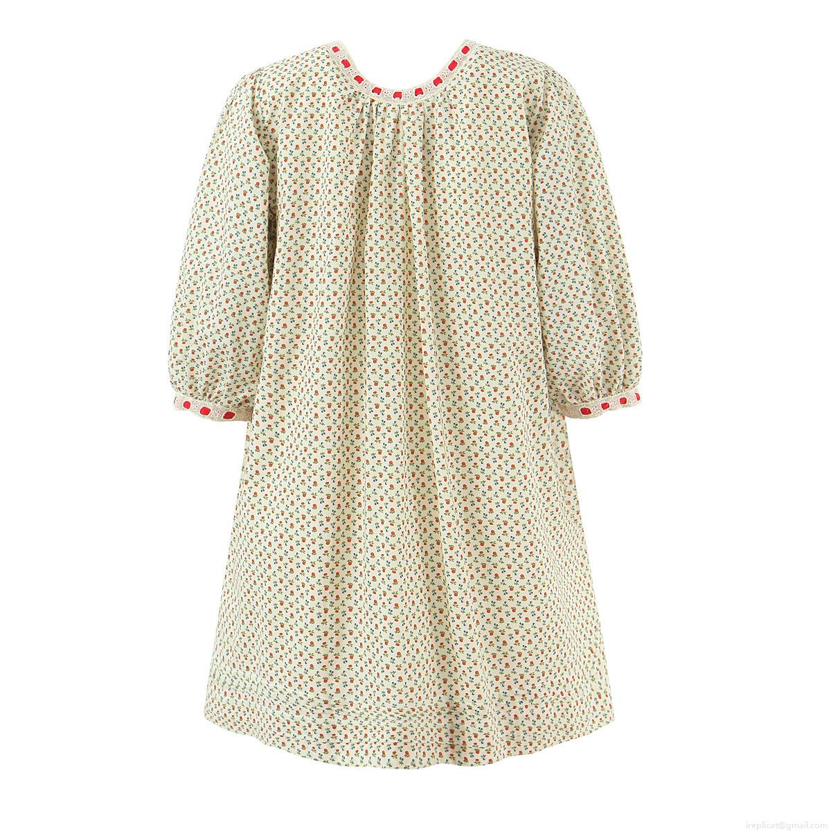 • Women French Pastoral 100% Cotton Floral Midi Dress With Puff Sleeves And Bow Knot U-Neck Sweet Fresh Beige Red Berry Print Summer Casual Loose Dress