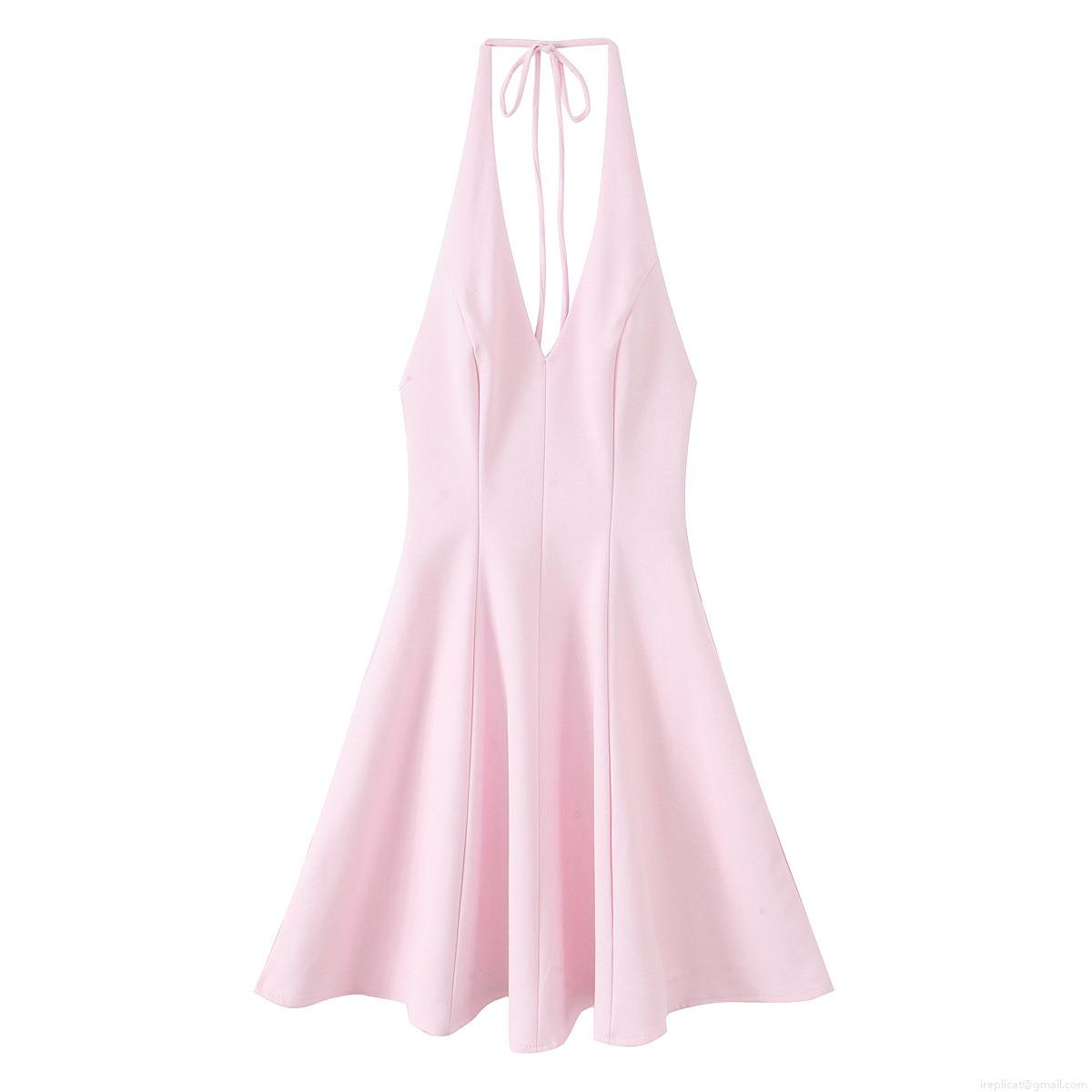 Solid Color, Neckband, Backless, Large Skirt, Deep V-neck