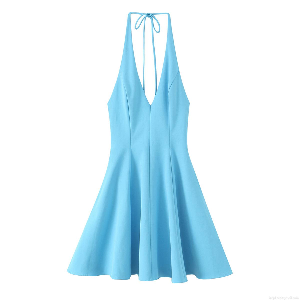 • Women Halter Deep V-Neck A-Line Mini Dress Sexy Backless High Waist Wide Hem Short Dress For Party Club Evening Date Night
