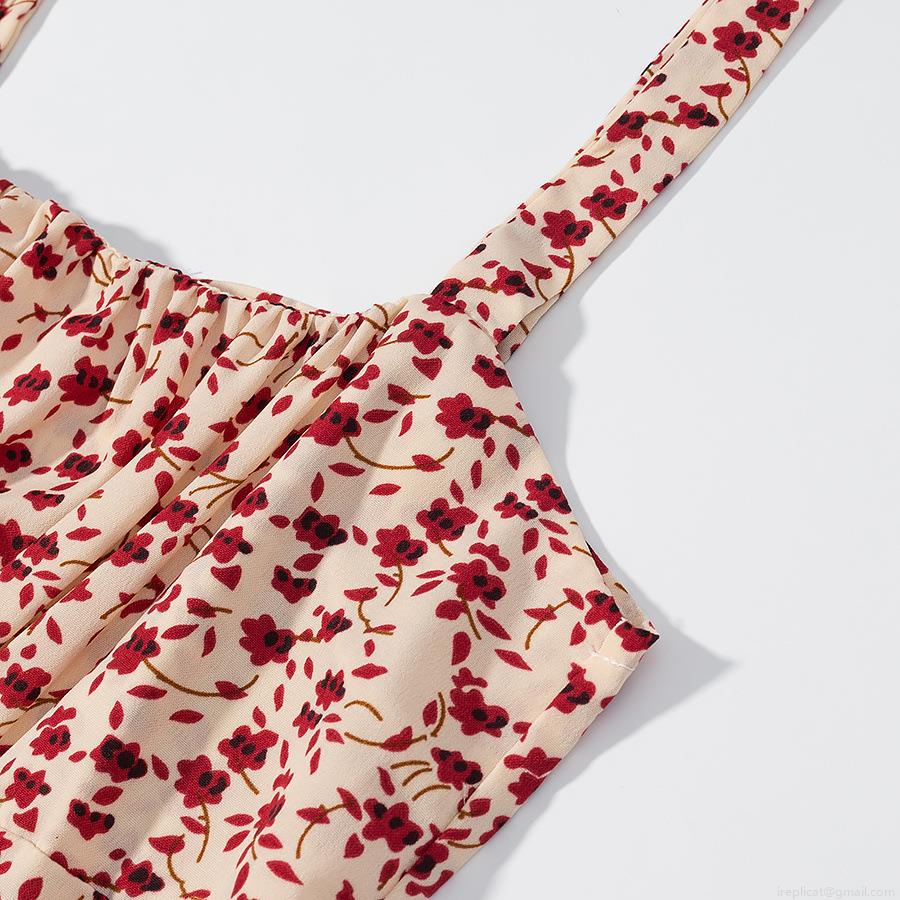 • Women Retro Floral Print Camisole Mini Dress Polyester Square Neck Ruffle Hem High Waist Slimming Sleeveless Dress For Summer Party Vacation Elegant Ladies Sundress