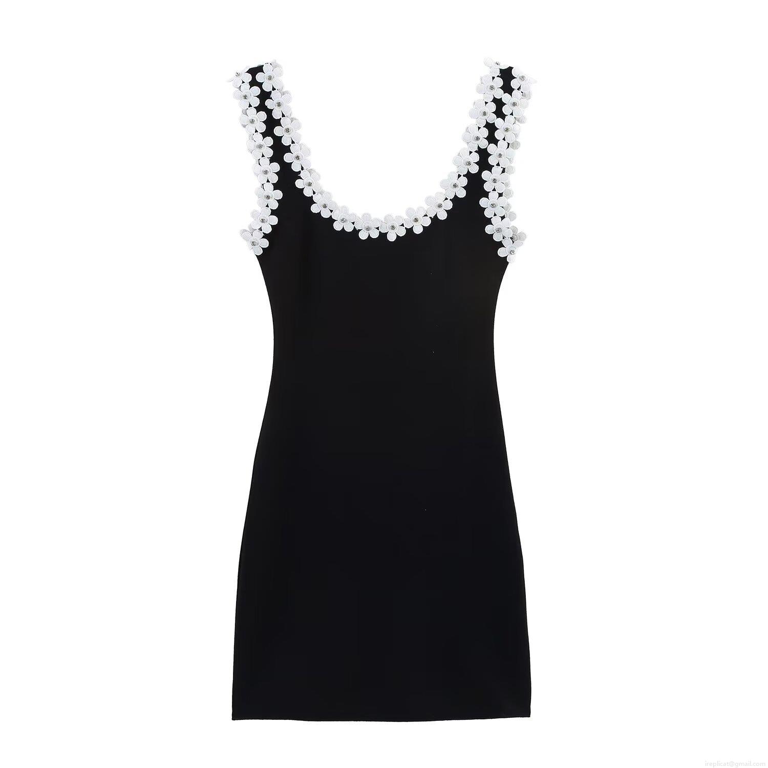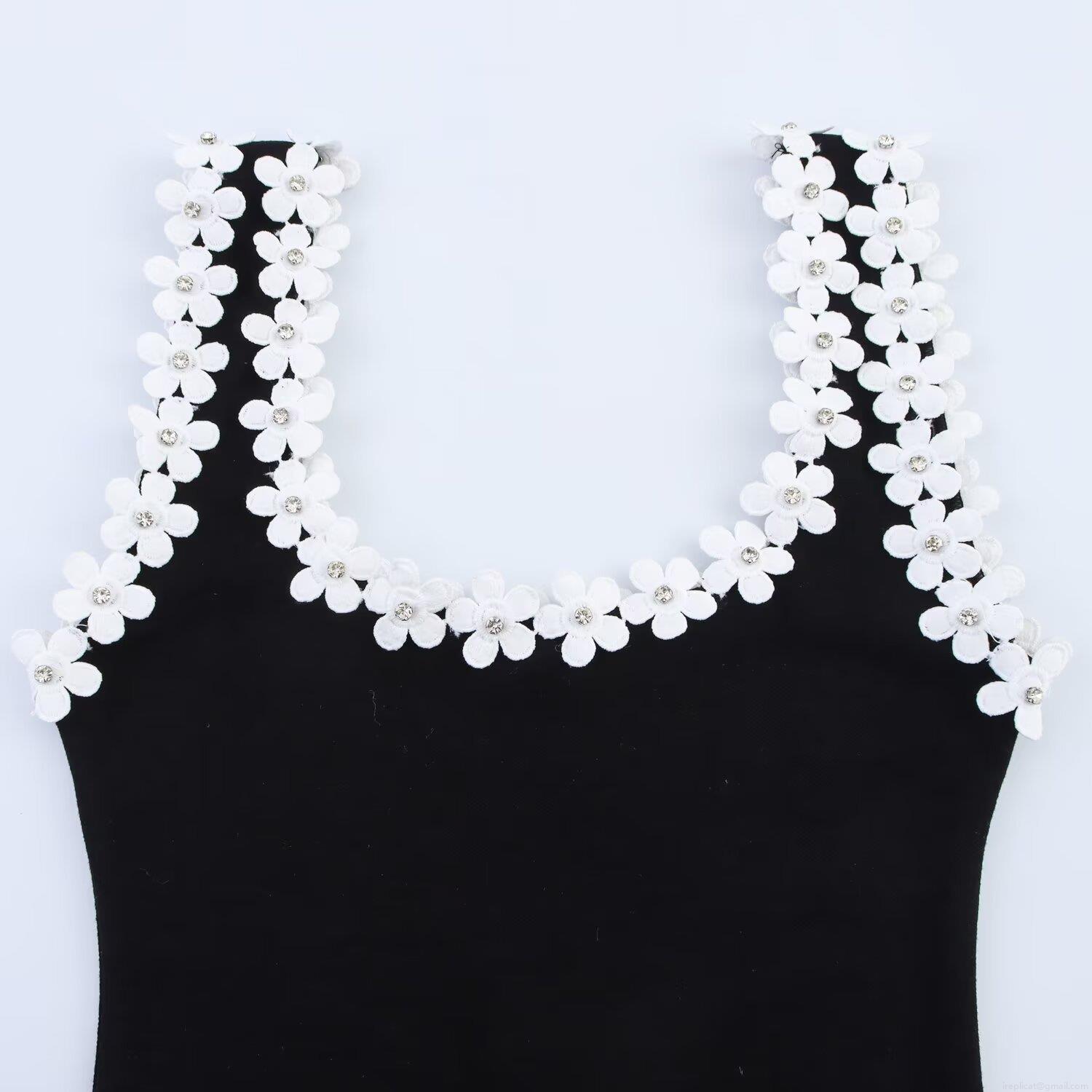 • Women Sexy 3D Flower Pearl Decor Mini Dress Summer Sleeveless Bodycon Camisole Dress Polyester Spandex Slim Fit Party Clubwear Black White