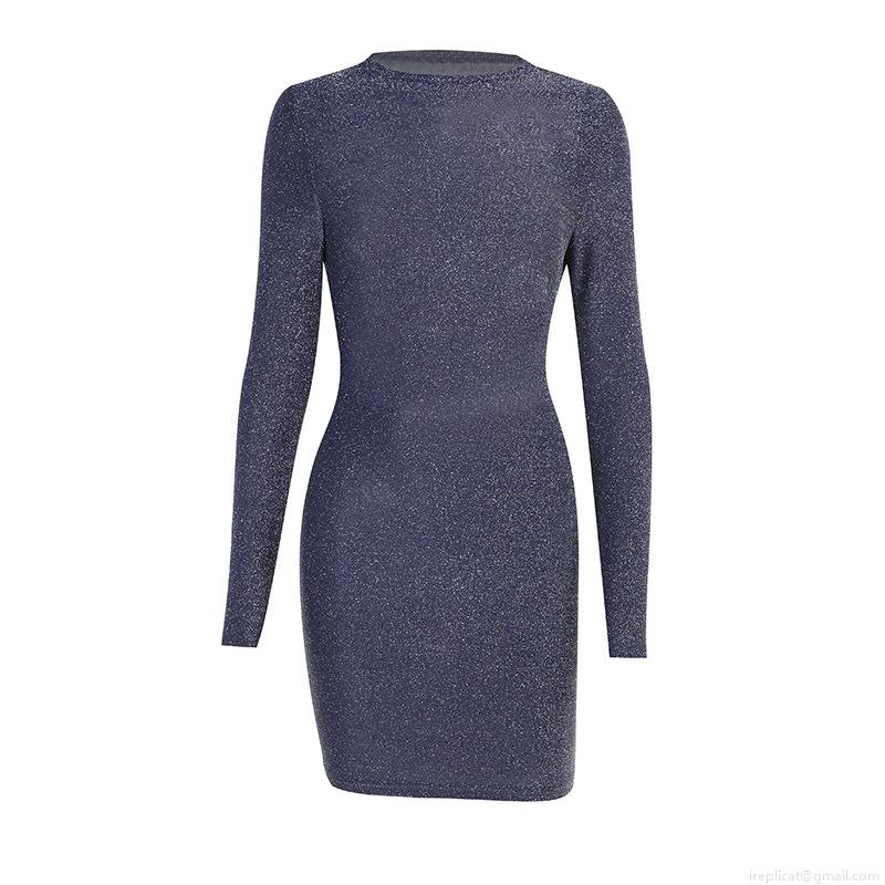 • Women Sexy Backless Glitter Mini Dress Long Sleeve Slim Fit Sparkly Metallic Bodycon Party Evening Clubwear Night Out Short Dress