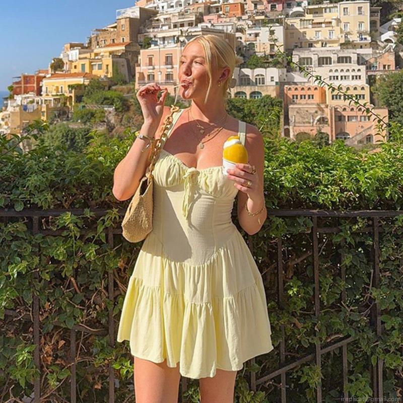 • Women Sexy Cami Mini Dress Sleeveless Smocked Back Tiered Ruffle Hem Polyester Spandex Summer Vacation Beach Party Dresses For Ladies