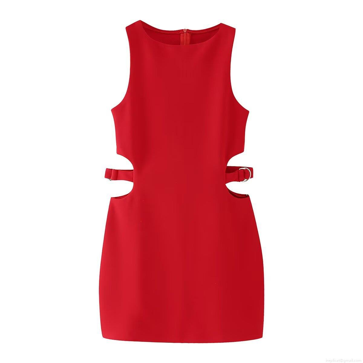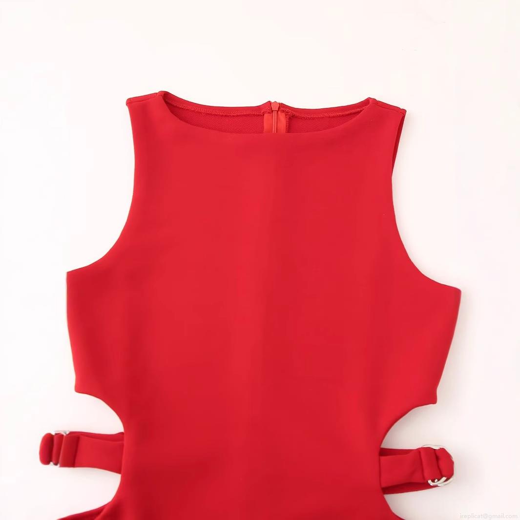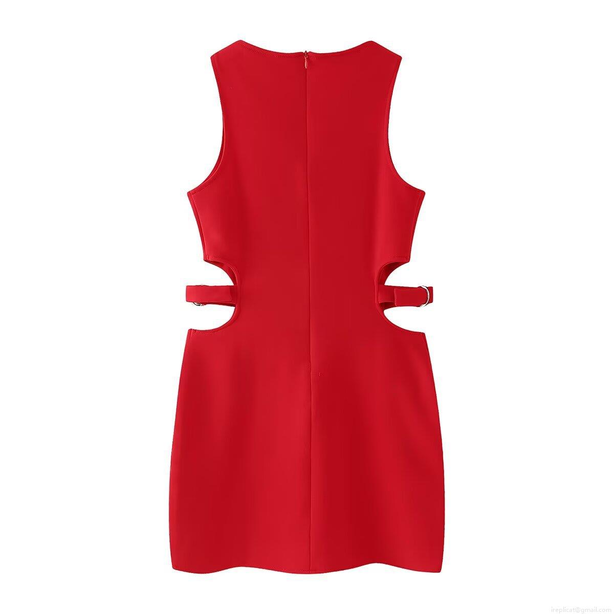 • Women Sexy Cut-out Waist Bodycon Mini Dress 100% Polyester Sleeveless Backless Red Dress With Metal Rings For Party Nightclub Clubwear
