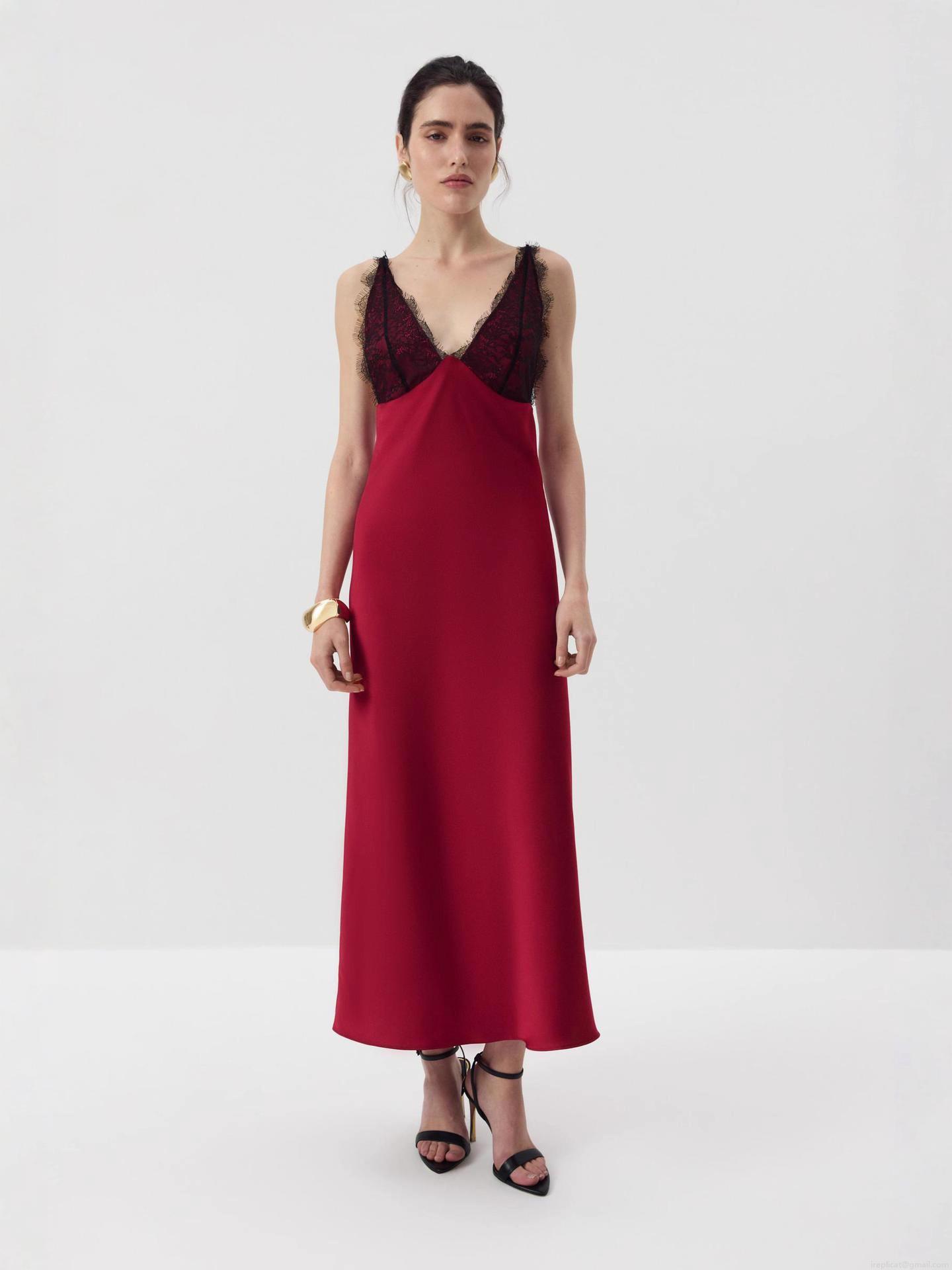 Women Sexy Lace Patchwork Satin Maxi Dress Elegant V-Neck Spaghetti Strap Long Dress Evening Party Clubwear Backless Silky Slip Dress