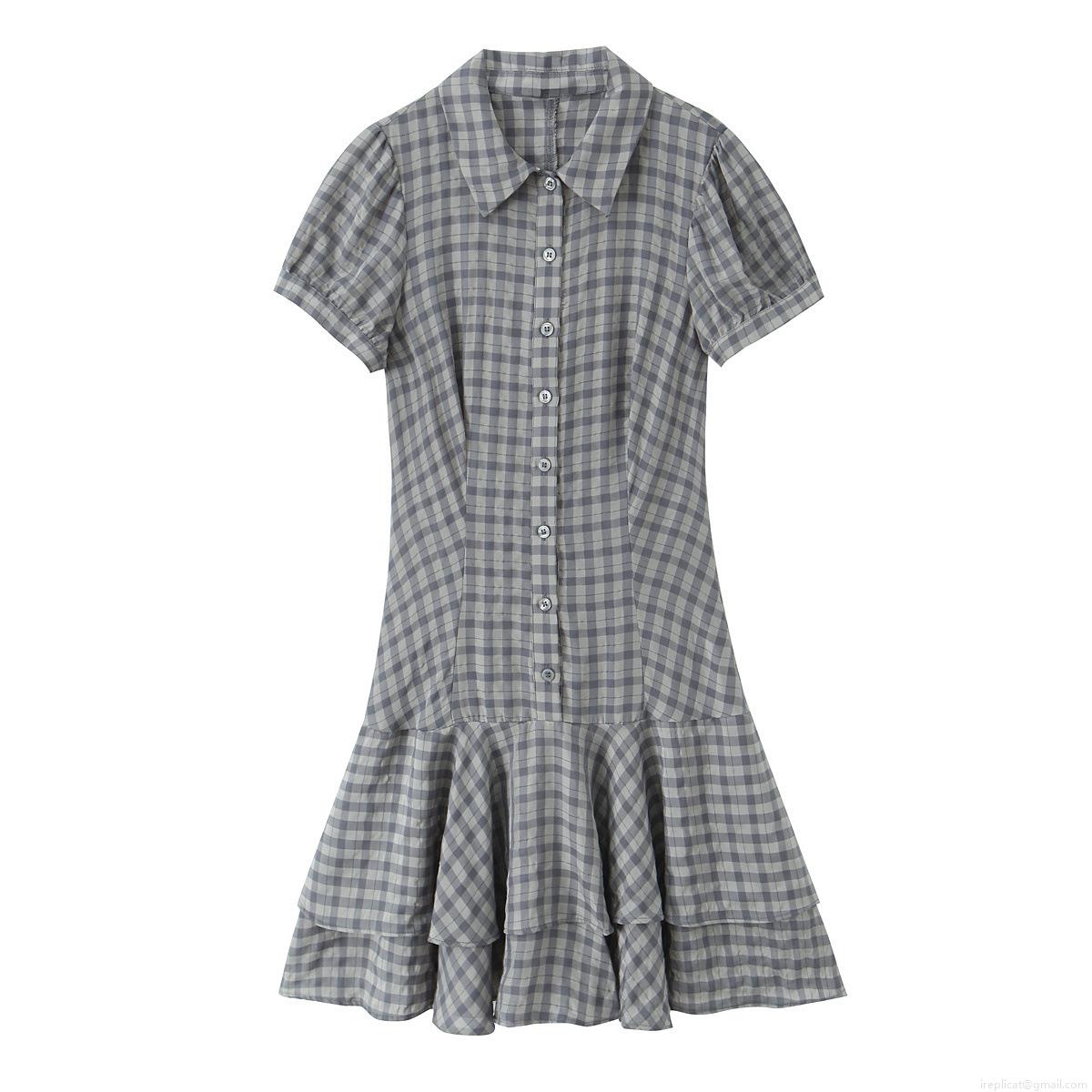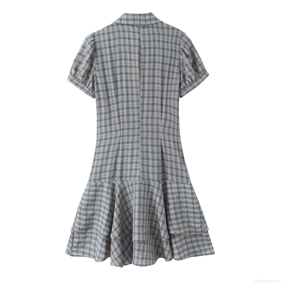 • Women Sweet Plaid Mini Dress Short Sleeve Lapel Collar Ruffle Hem Layered Checkered Dress For Daily Casual Vacation Party Ladies Summer Dress