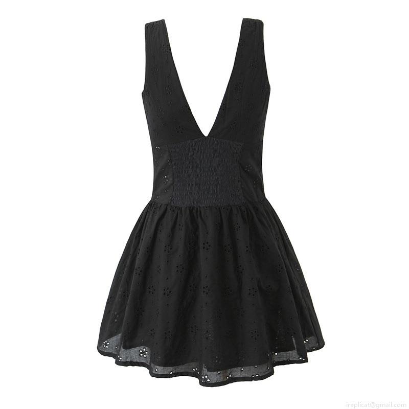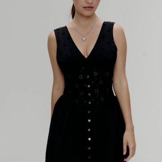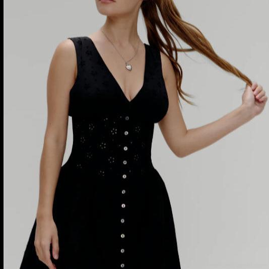 • Women's Black Eyelet Embroidery V-Neck Sleeveless Dress Sexy Button Down Mini A-Line Sundress Summer Cotton Broderie Anglaise Dress for Women