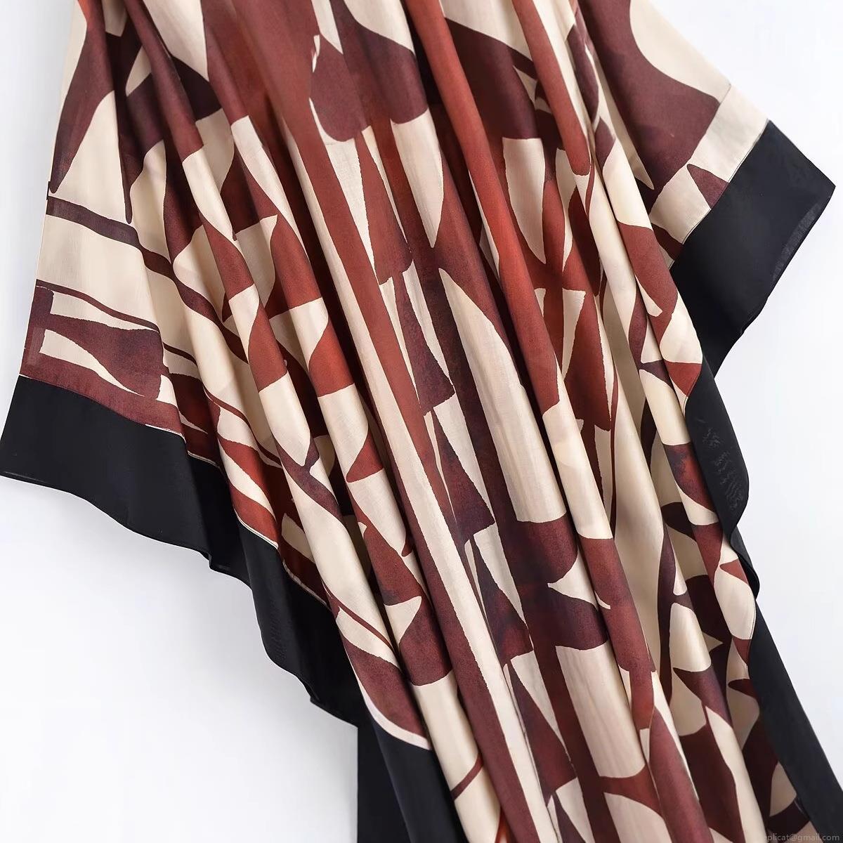 Geometric Patterns, Splicing Design, Black Trim, Color-blocked Print