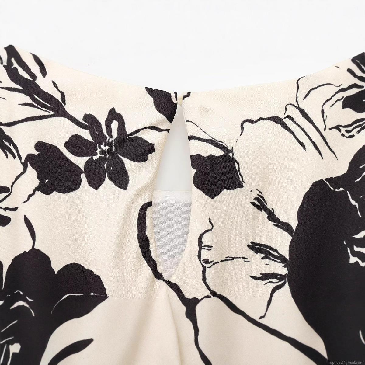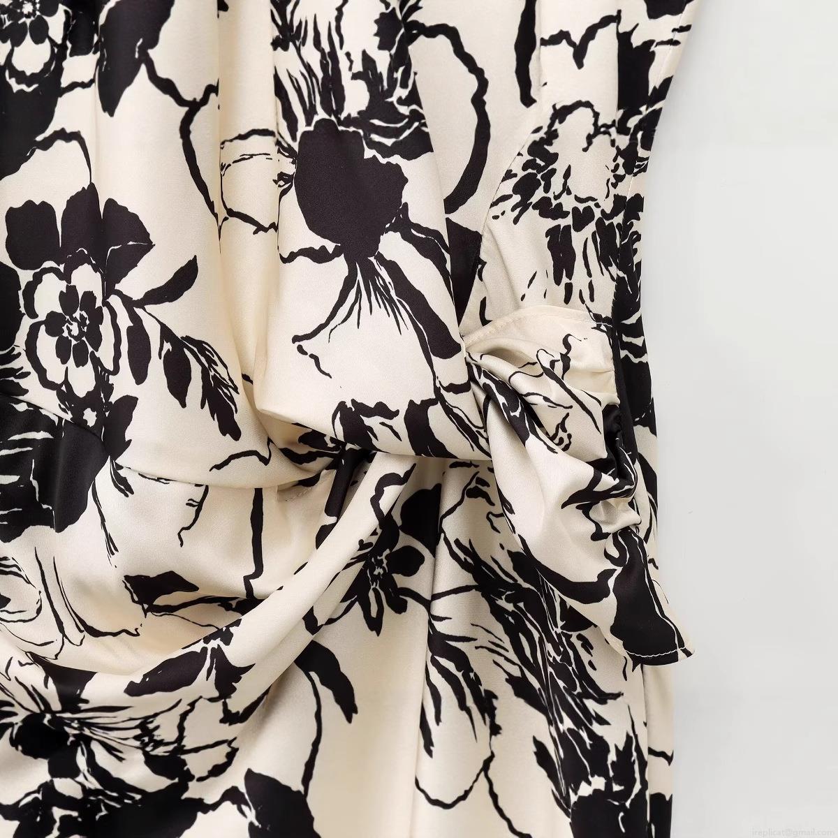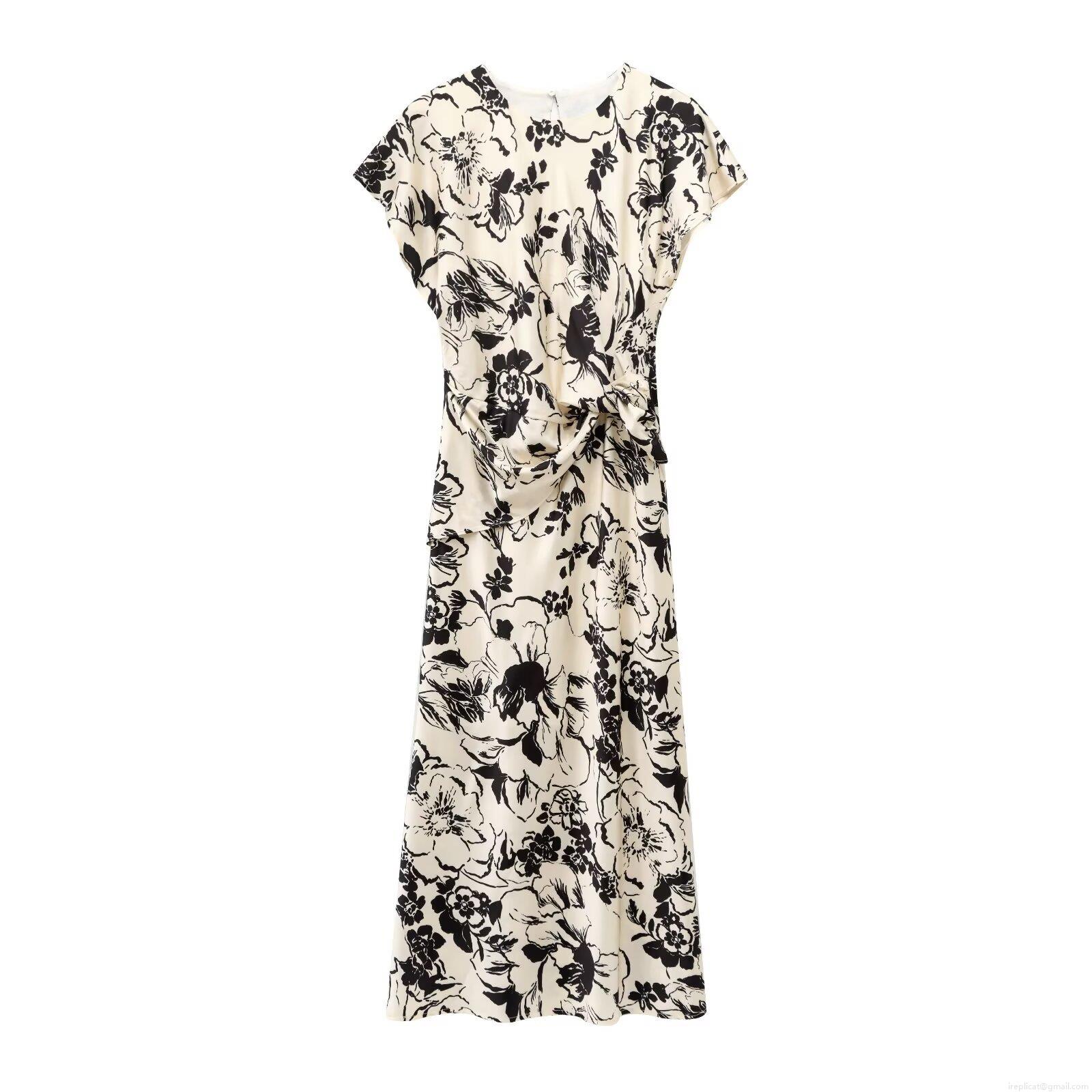 Pleats, Waist shaping, Printing, Knot, Abstract Flowers