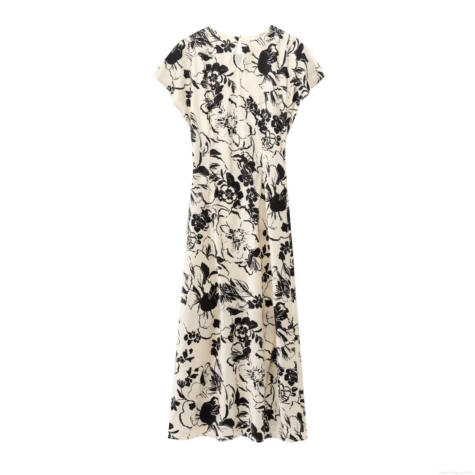 • Women's Elegant Floral Print Maxi Dress Satin Textured Twist Waist Round Neck Short Sleeve A-Line Long Dress For Party Vacation Daily Wear