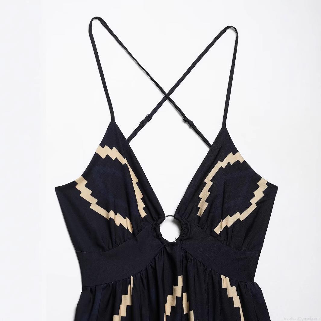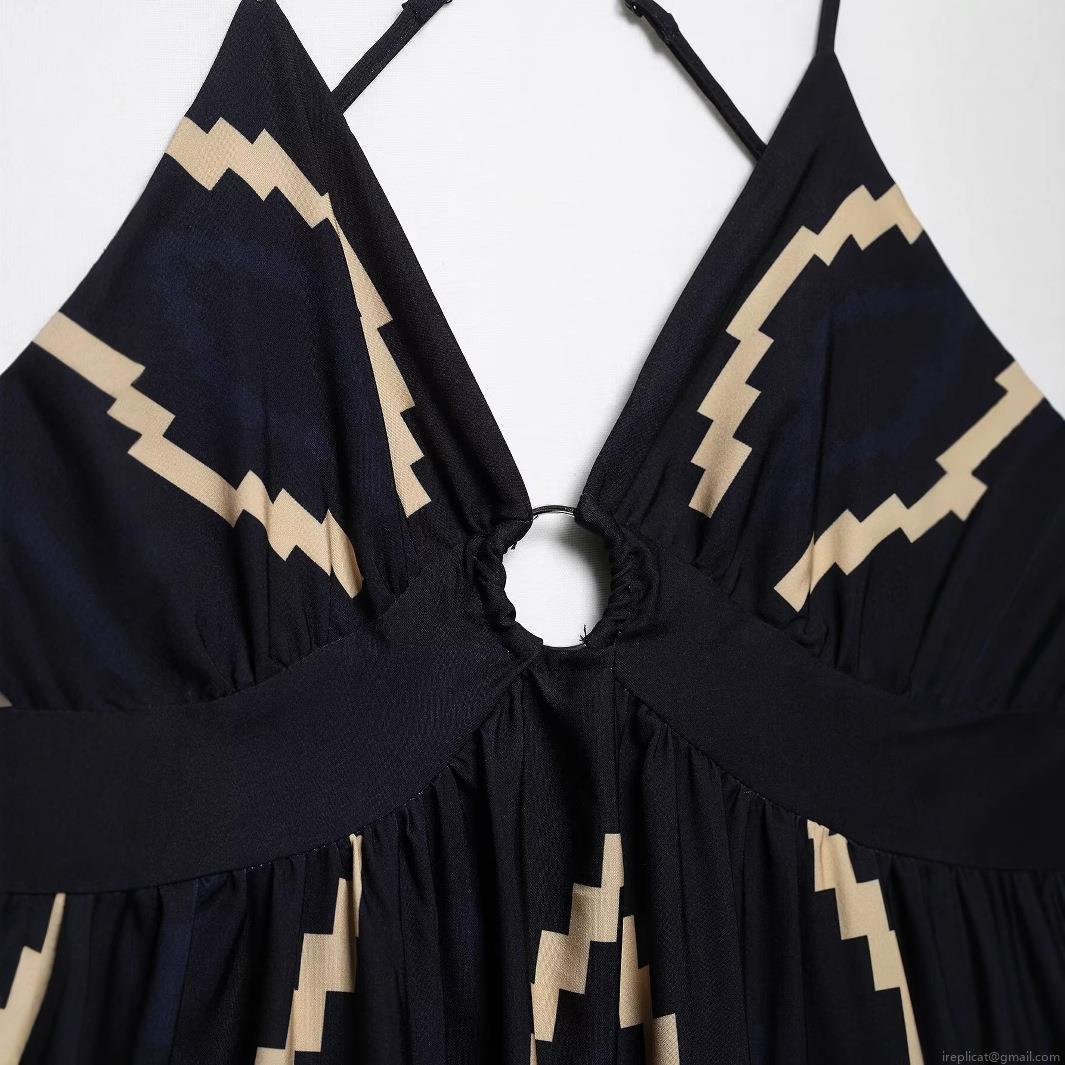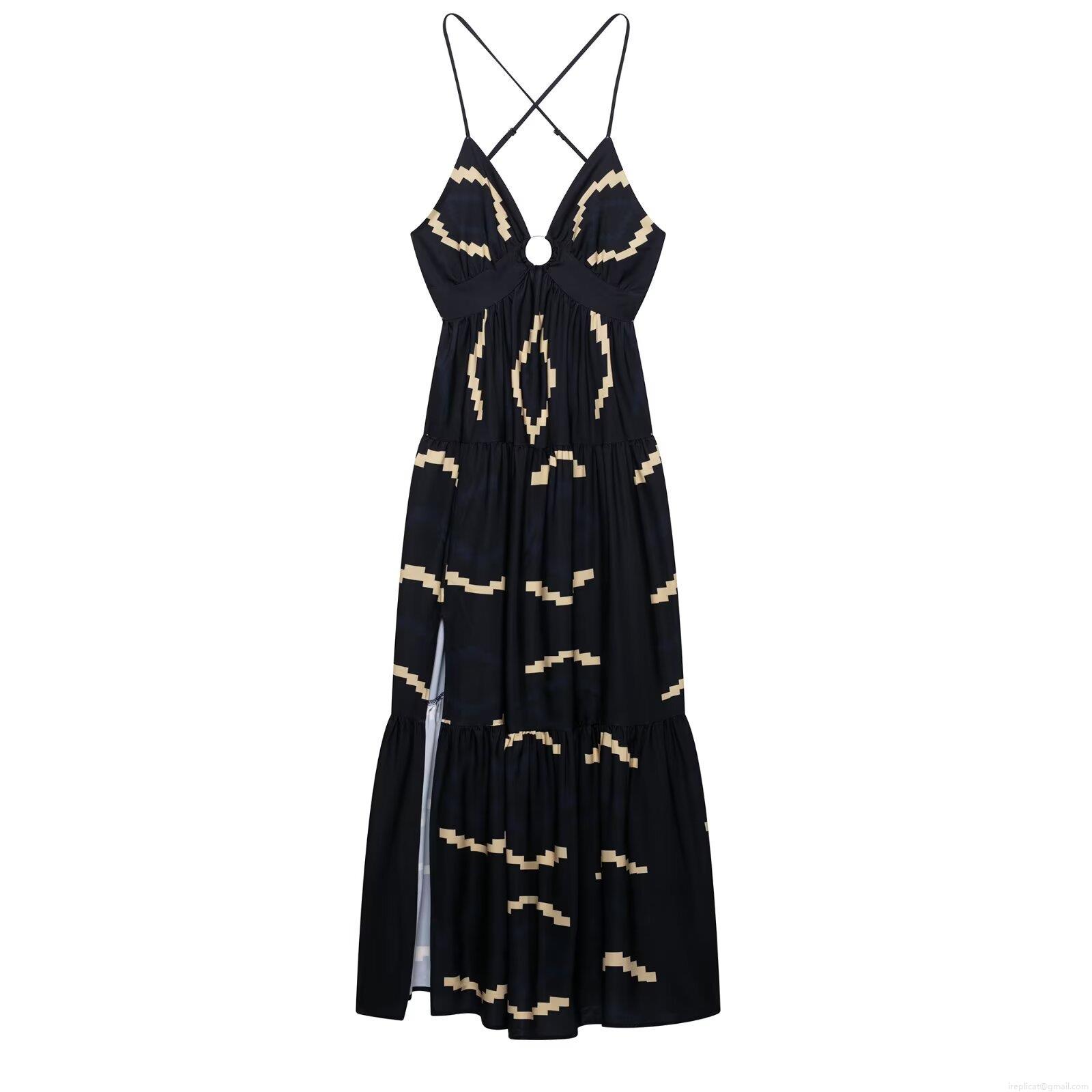 • Women's Elegant Halter Neck Backless Slit Maxi Dress Sexy V-Neck Geometric Print Long Dress With Ring Buckle For Summer Party Vacation Celebrity Style Polyester