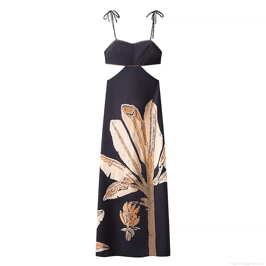 Hollow Out, Palm Leaves, Backless, Showing Off Your Waist, Bow Tie, Banana Leaf Print
