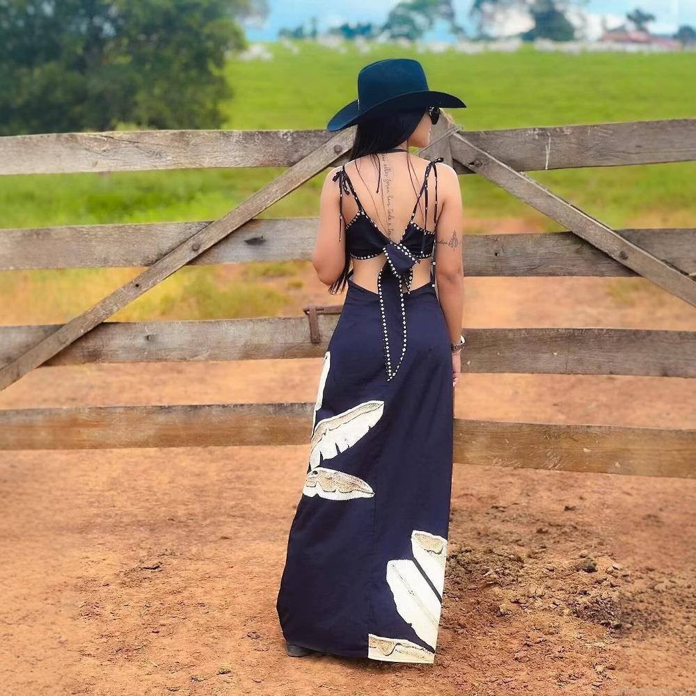 • Women's Elegant Tropical Palm Leaf Print Maxi Dress Backless Cut-out Cami Long Dress With Bow Shoulder Straps For Vacation Summer Party