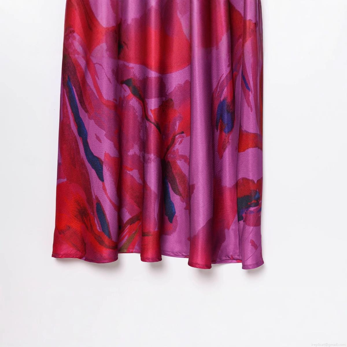 • Women's Elegant V-Neck Satin Midi Dress Abstract Floral Print Sleeveless Cut-Out Waist Sexy Evening Party Dresses For Summer Vacation