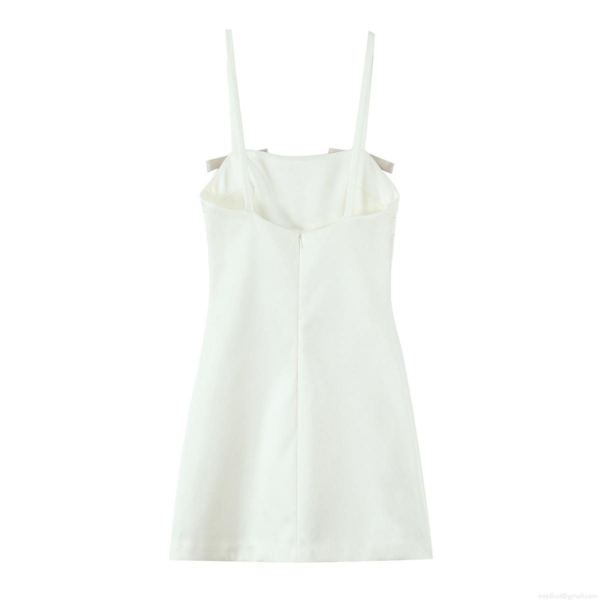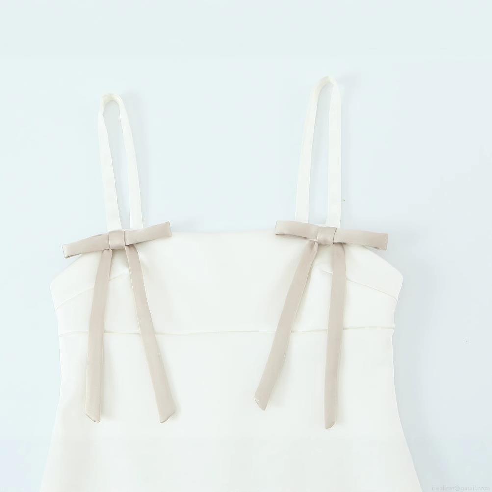 • Women's Elegant White Cami Mini Dress With Bow Decoration Polyester Sleeveless Back Zipper Straight Neckline Short Dress For Party Cocktail Date Night