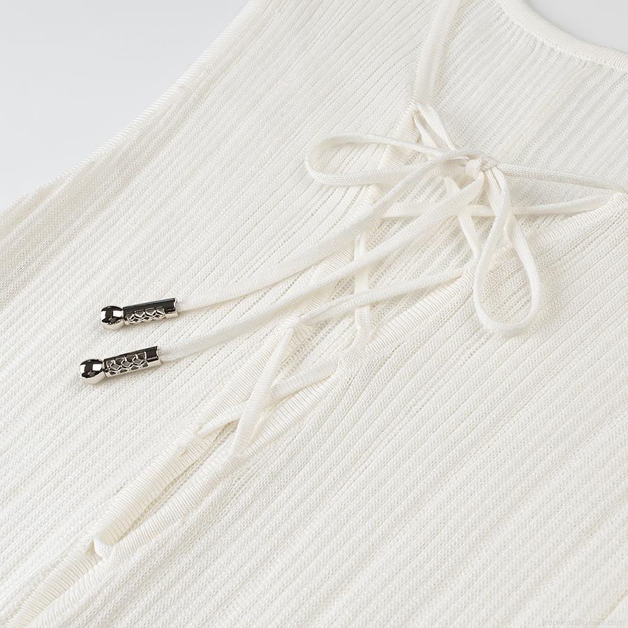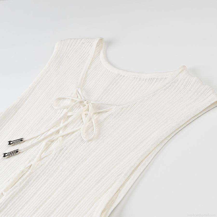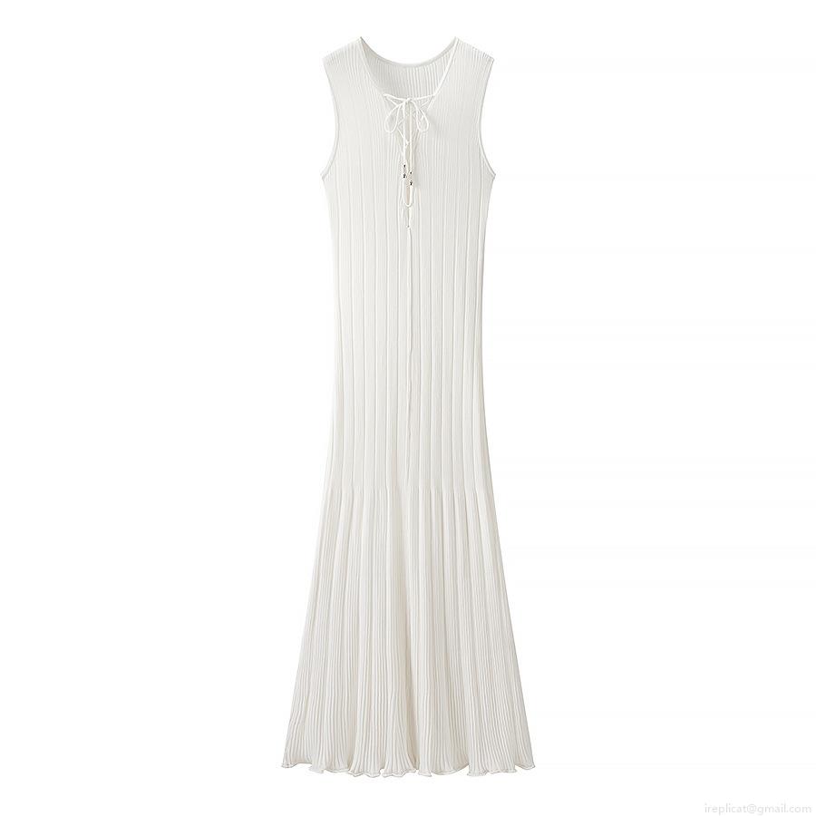 • Women's Maxi Dress Summer V-Neck Sleeveless Lace-up Drawstring Ribbed Cotton Knit Slim Fit Casual Vacation Streetwear Long Dress