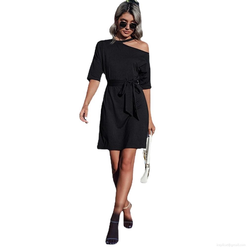Solid Color, Waist shaping, Lace, Sloping Shoulders, Asymmetrical Design