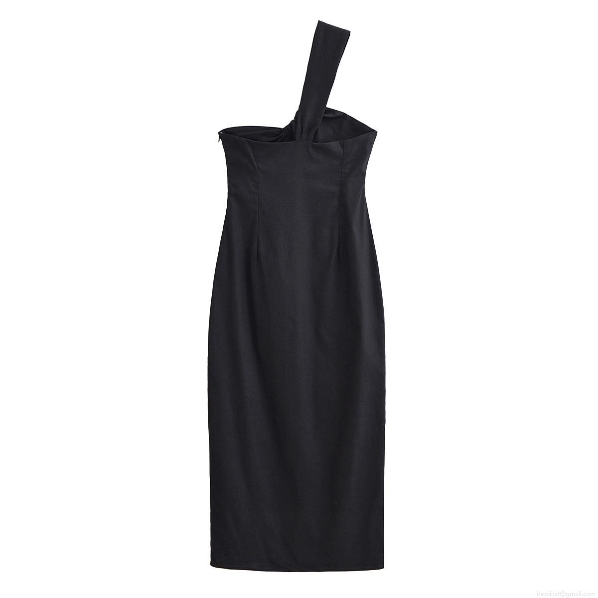 • Women's One-Shoulder Ruched Bodycon Dress Polyester Asymmetrical Side Slit Sleeveless Midi Dress For Evening Party Cocktail Clubwear Black