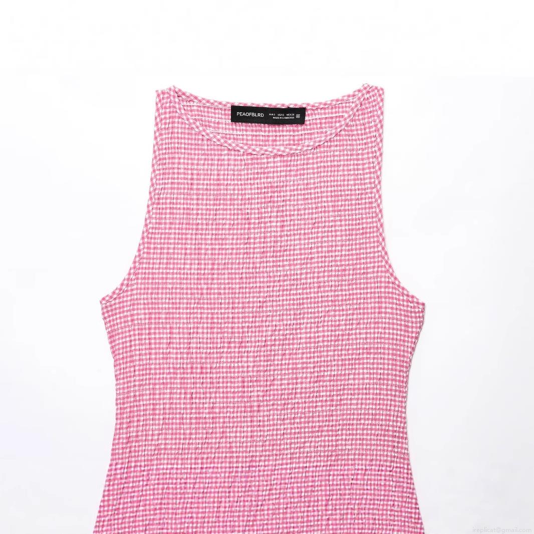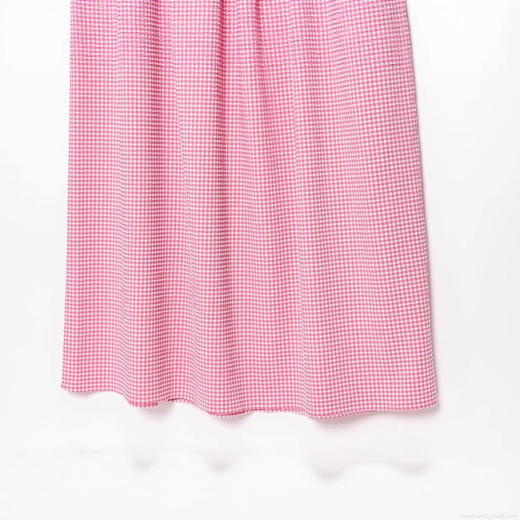 • Women's Pink White Gingham Smocked Midi Dress Sleeveless Round Neck Seersucker A-Line Long Sundress For Summer Vacation Daily Party Lady
