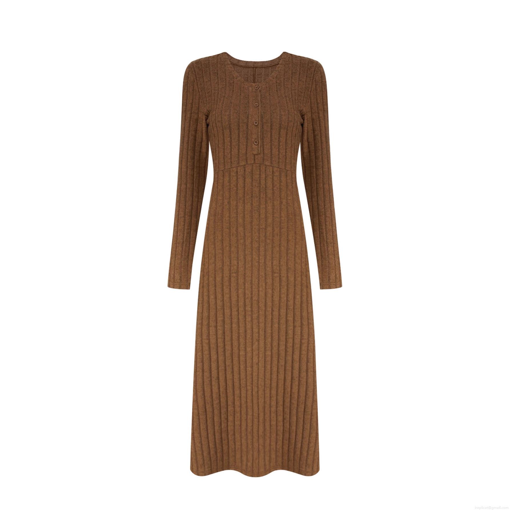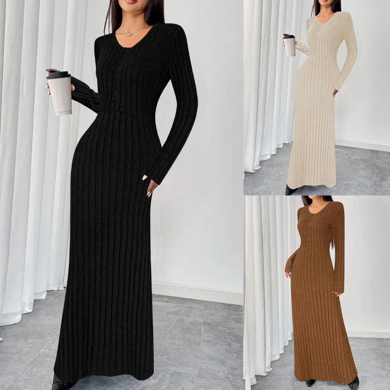 • Women's Plus Size Ribbed Knit Maxi Dress Elegant V-Neck Long Sleeve Slim Fit Henley Bodycon Sweater Dress For Autumn Winter Casual Daily Office Wear