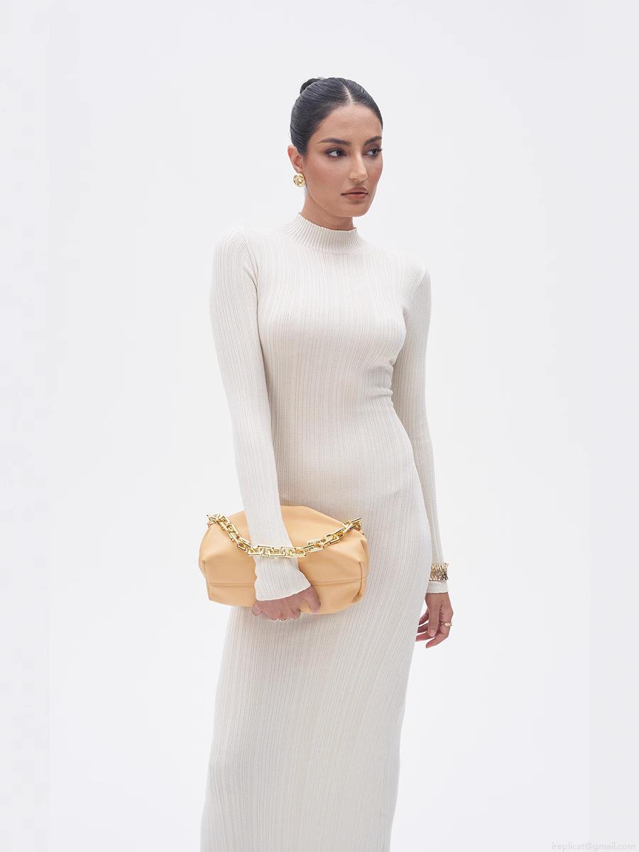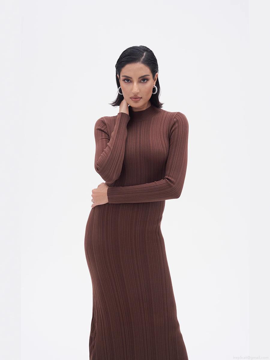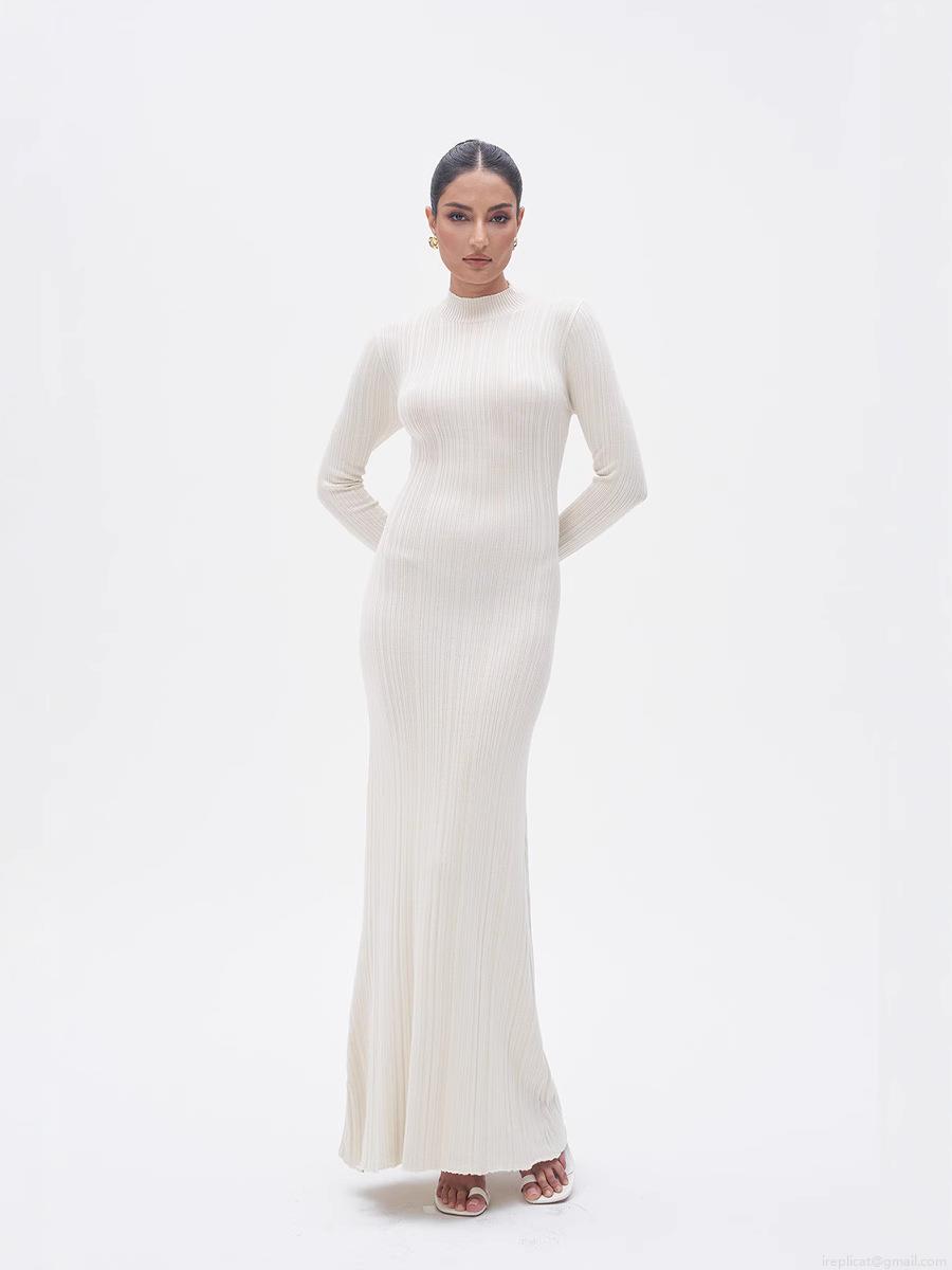 • Women's Ribbed Knit Maxi Dress Mock Neck Long Sleeve Slim Fit A-Line Solid Color Viscose Nylon Sweater Dress For Spring Autumn Daily Wear