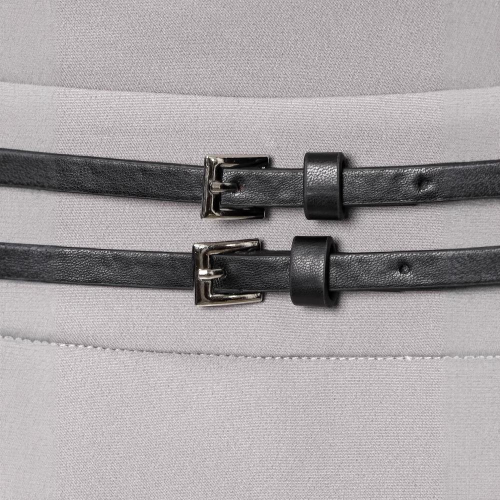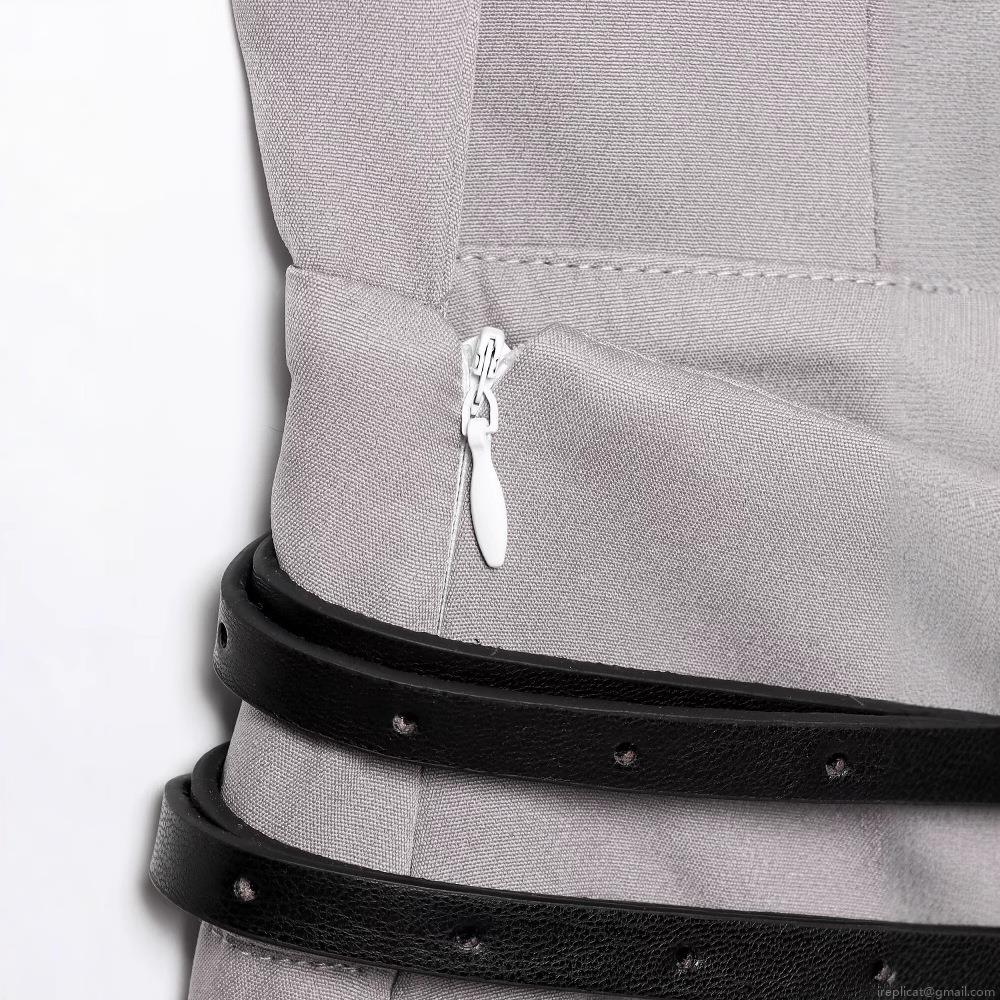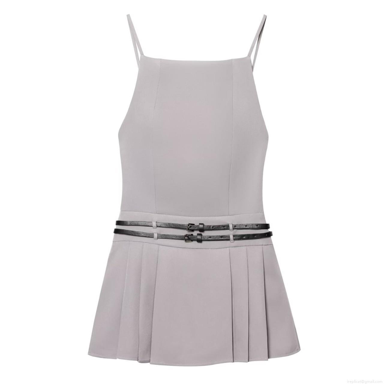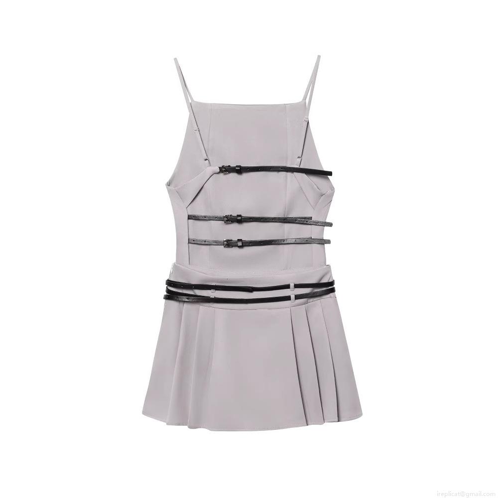 • Women's Sexy Backless Pleated Mini Dress Elegant Grey V-Neck Camisole Party Dress With Double Black Leather Belt Decoration