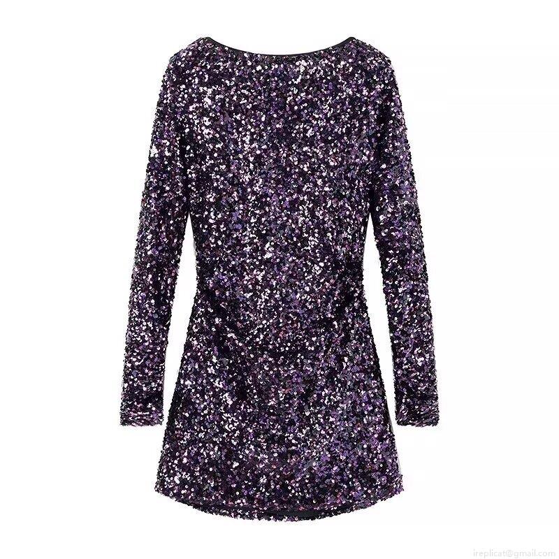 • Women's Sexy Backless Sequin Bodycon Mini Dress Long Sleeve Shiny Purple Glitter Nightclub Party Evening Banquet Celebration Dress