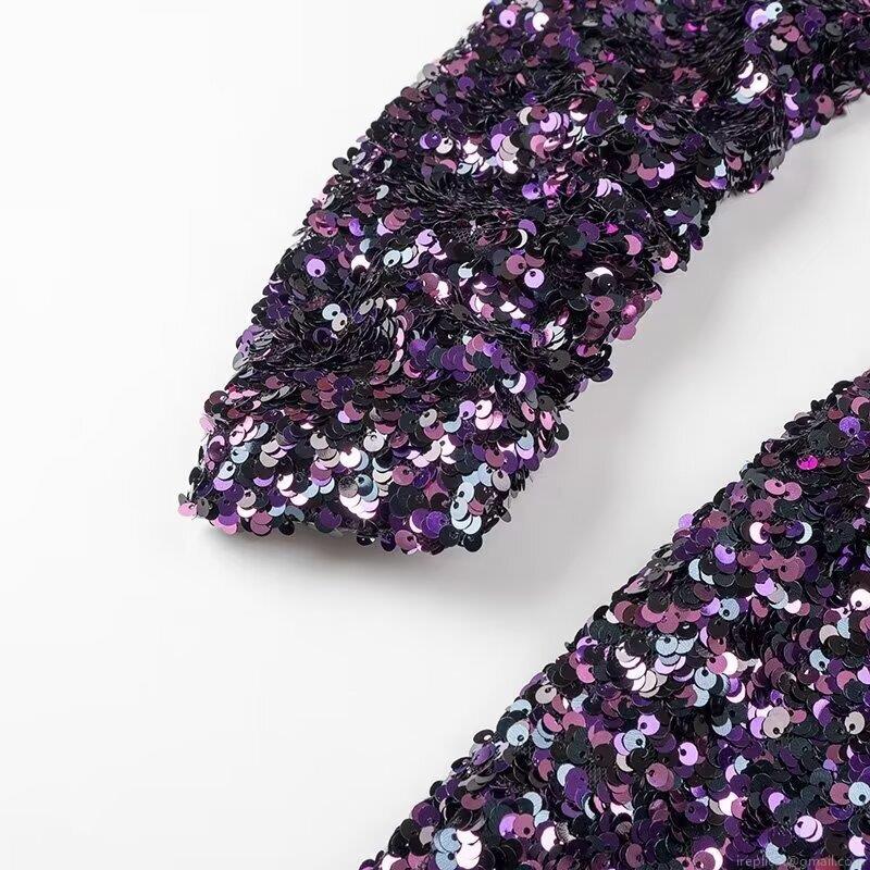 Women's Sexy Backless Sequin Bodycon Mini Dress Long Sleeve Shiny Purple Glitter Nightclub Party Evening Banquet Celebration Dress